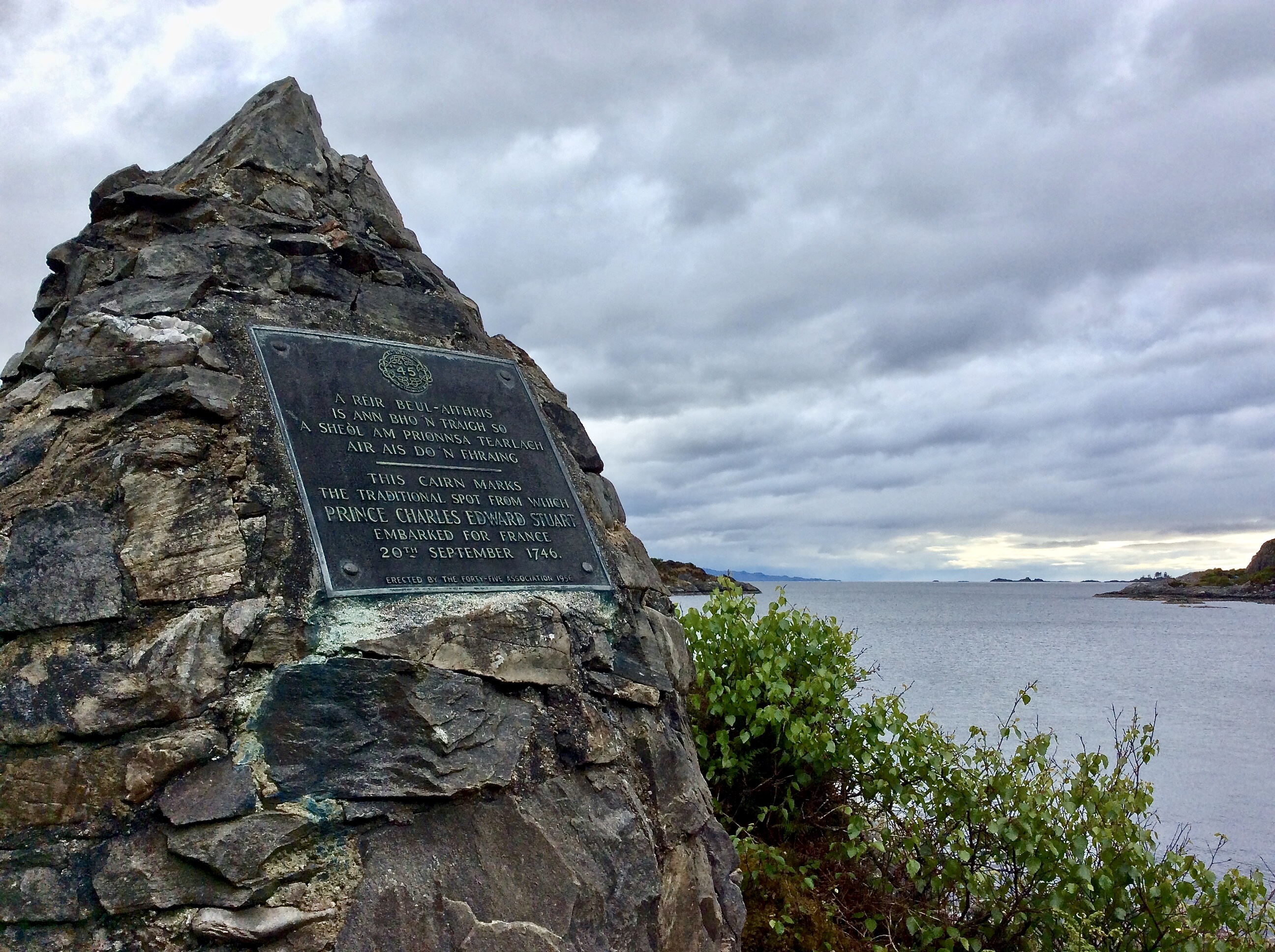 The thought occurred to me when we reached Mallaig that it was not only the end of the line for our train journey, but also here in this area, it was the end of the line for the Stuart dynasty, and for the dream of a young prince who dreamt of power and glory. Just a few miles further west, we later visited another monument at the spot where this same prince was secretly taken on-board a French sailing vessel, to make his ignominious escape from those who were hunting him down.