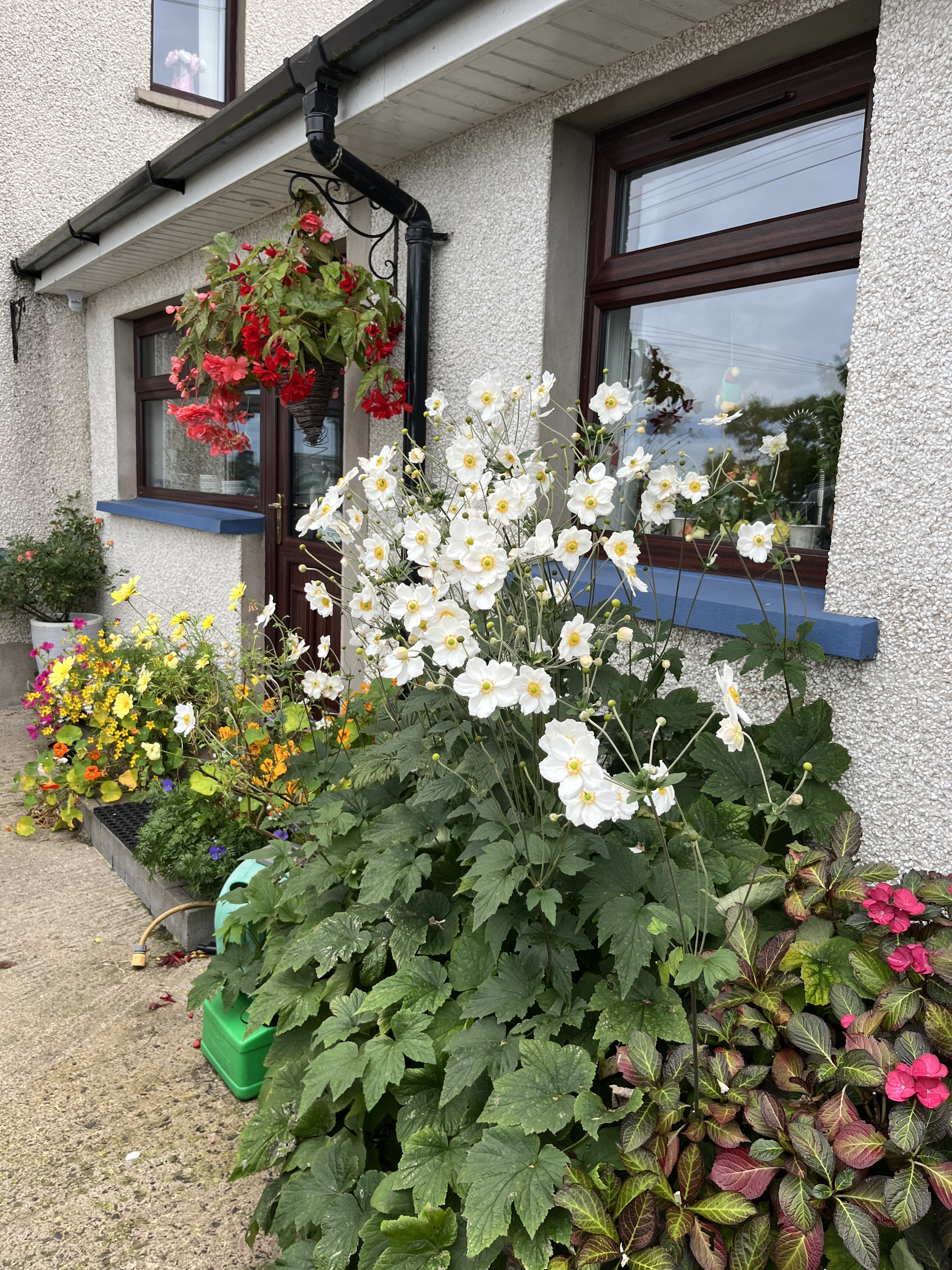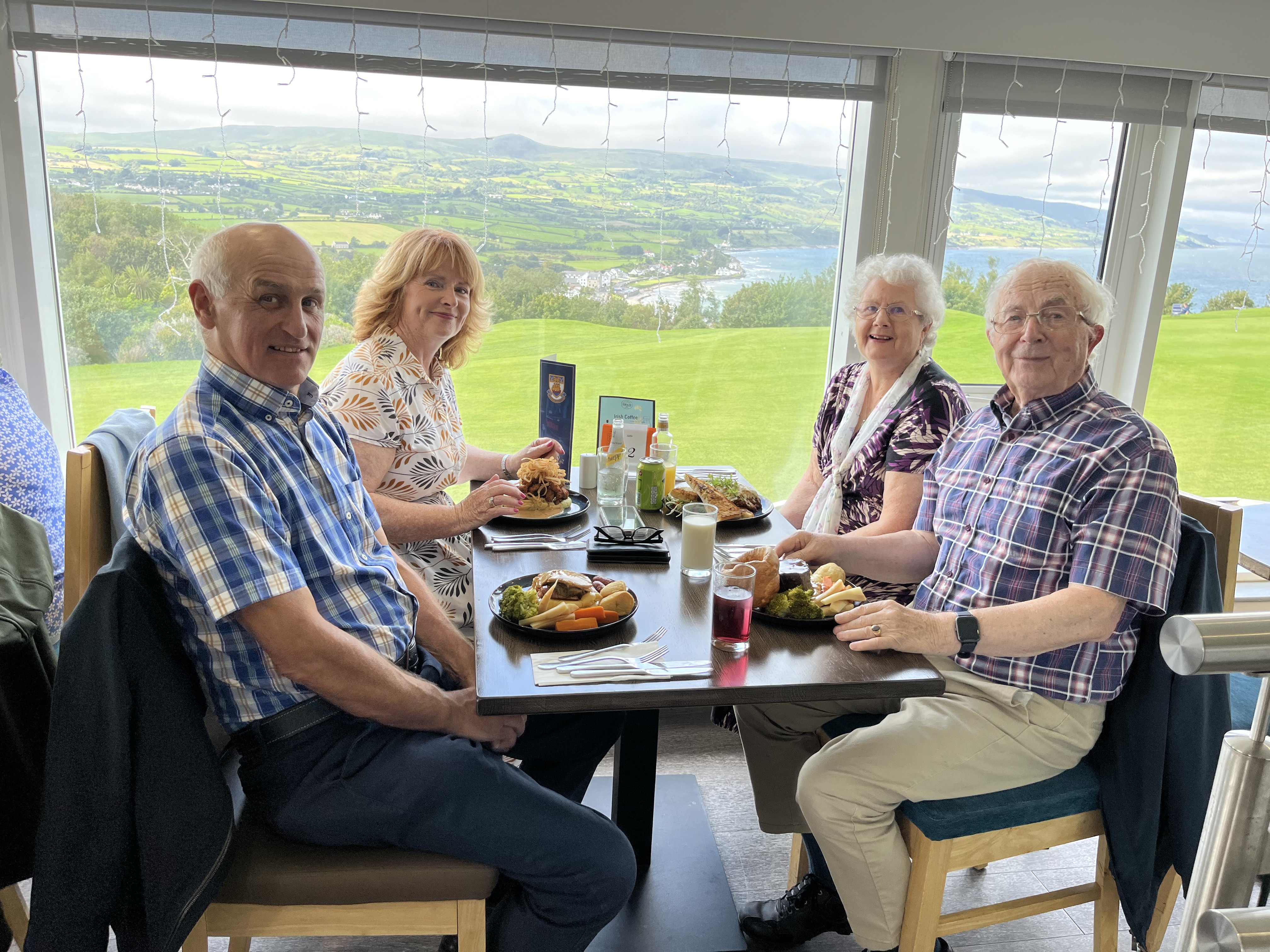 It’s good to be busy and its good at times to sit back and relax, so after the previous busy day, that’s just what we did next in the best of surroundings with family and their village friends in Cairncastle. On the Sunday we enjoyed attending Cairncastle Presbyterian Church for their morning service, and this was followed by our wedding anniversary celebration lunch at the beautiful Cairndhu Golf Club restaurant. Throughout the sun continued to shine, and the flowers were blooming in abundance!