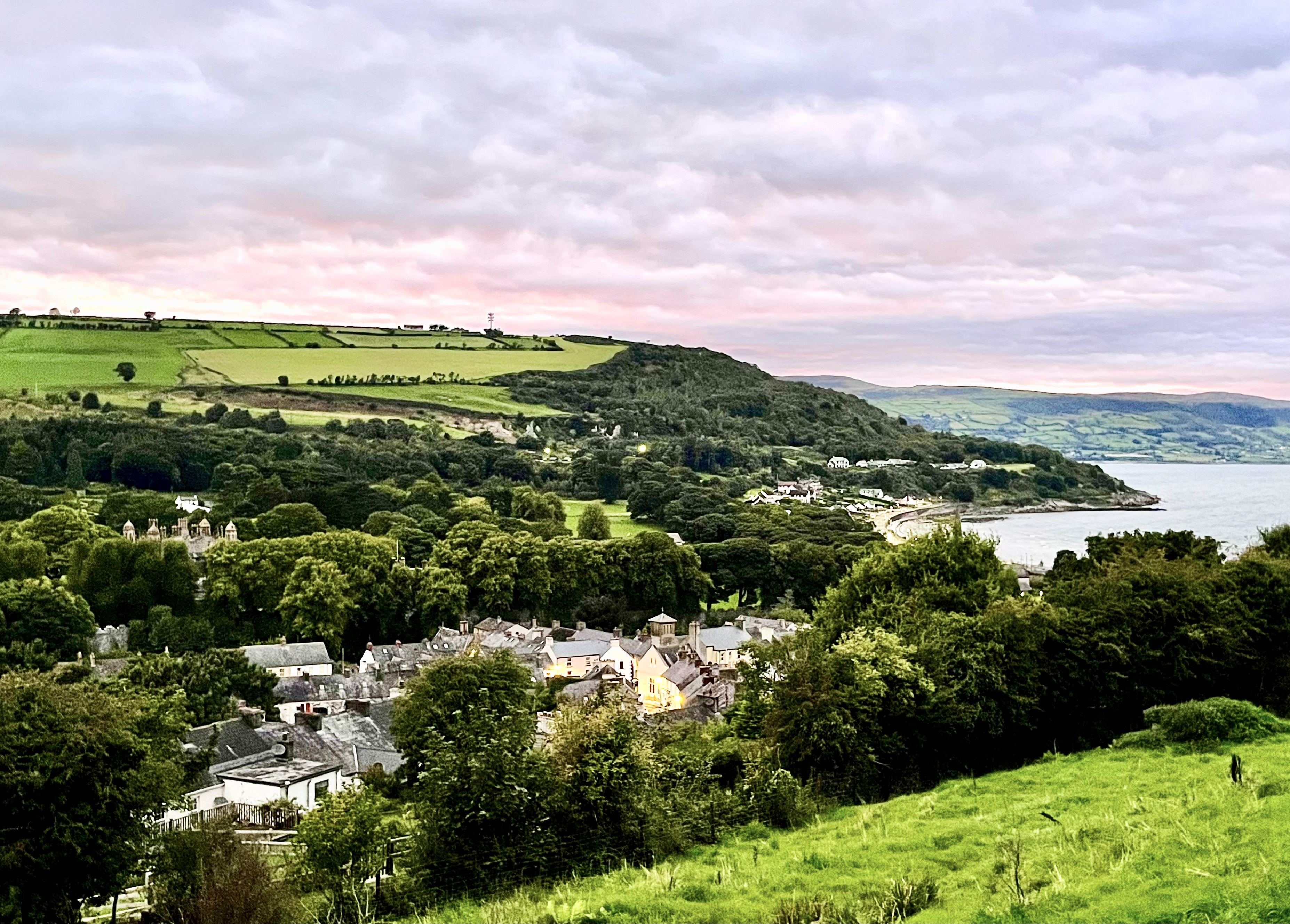Met by our friends at Larne, we were soon at their beautiful ‘Arran View’ bed and breakfast’ at Cairncastle, (arranviewbedandbreakfast.co.uk) and relaxing with a cup of tea, ready for a long catch-up! After an evening meal the sun was still shining, so we enjoyed a guided tour of the local area. Photos below.