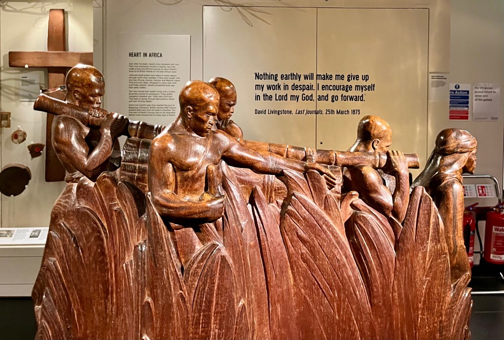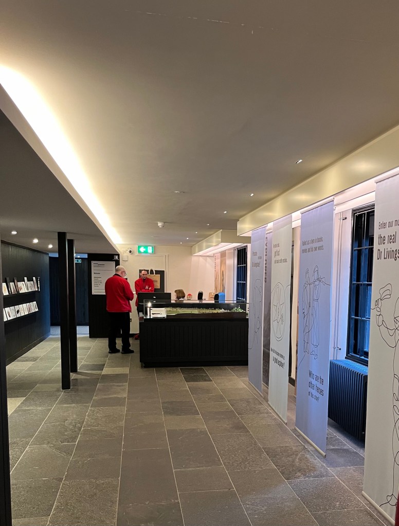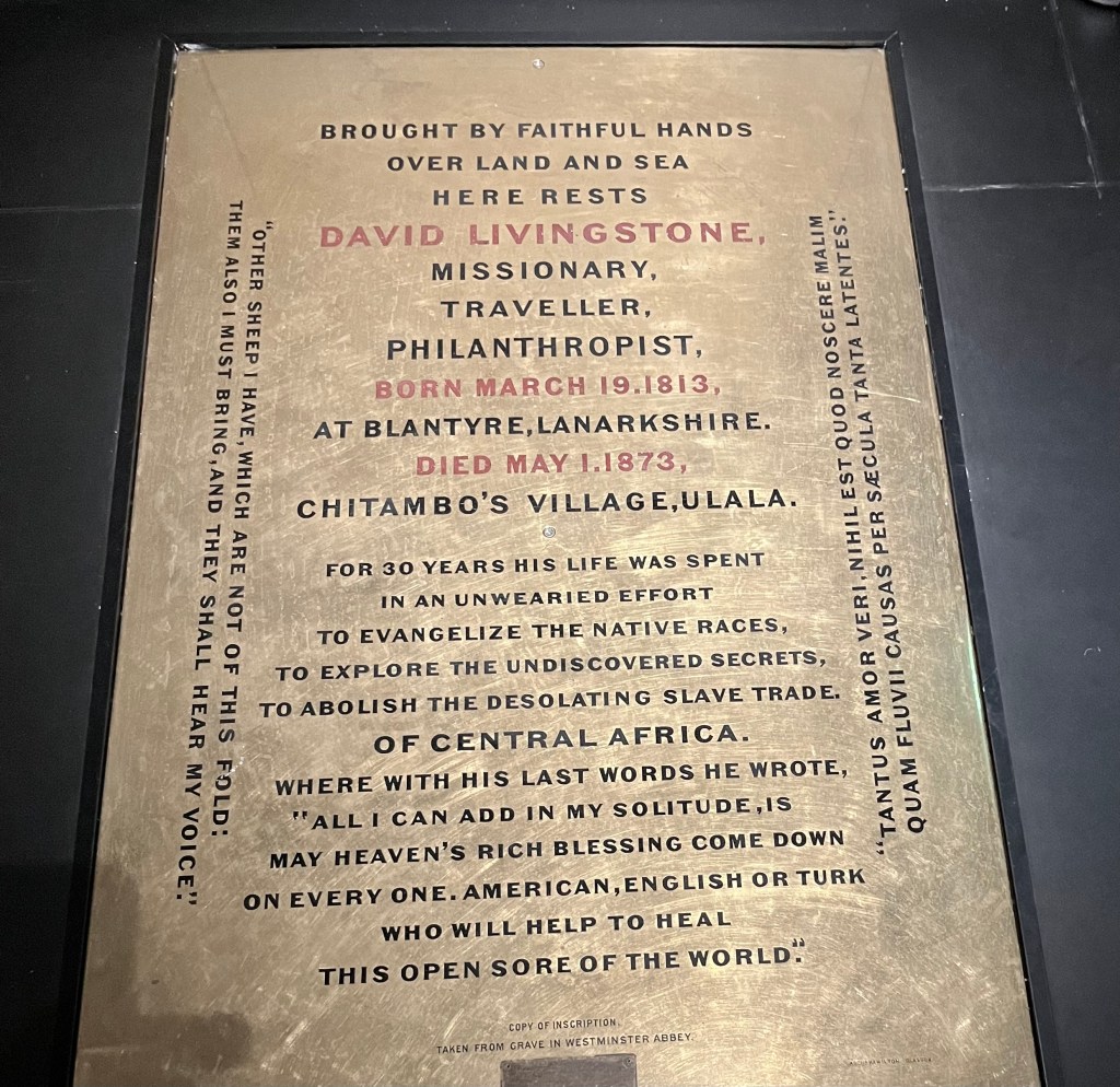 Museum Entrance The familly’s Single room >These panels illustrate and tell his storyDavid’s wife MaryThese panels illustrate and tell his storyOne of a number of many ‘reliefs’ within the museumThe film roomCopy of the Westminster Grave slab.Brave and valliant friends David Livingstone