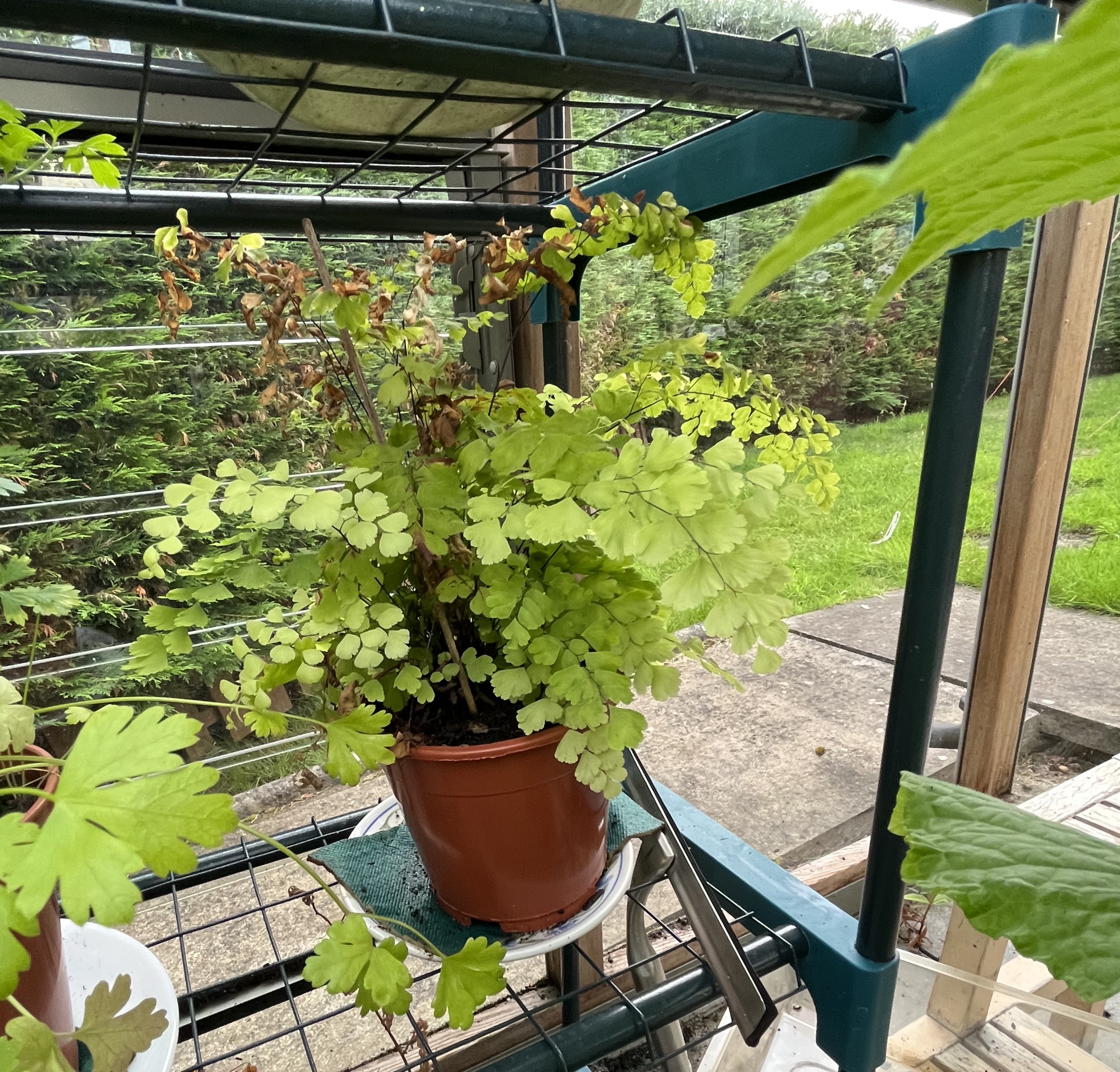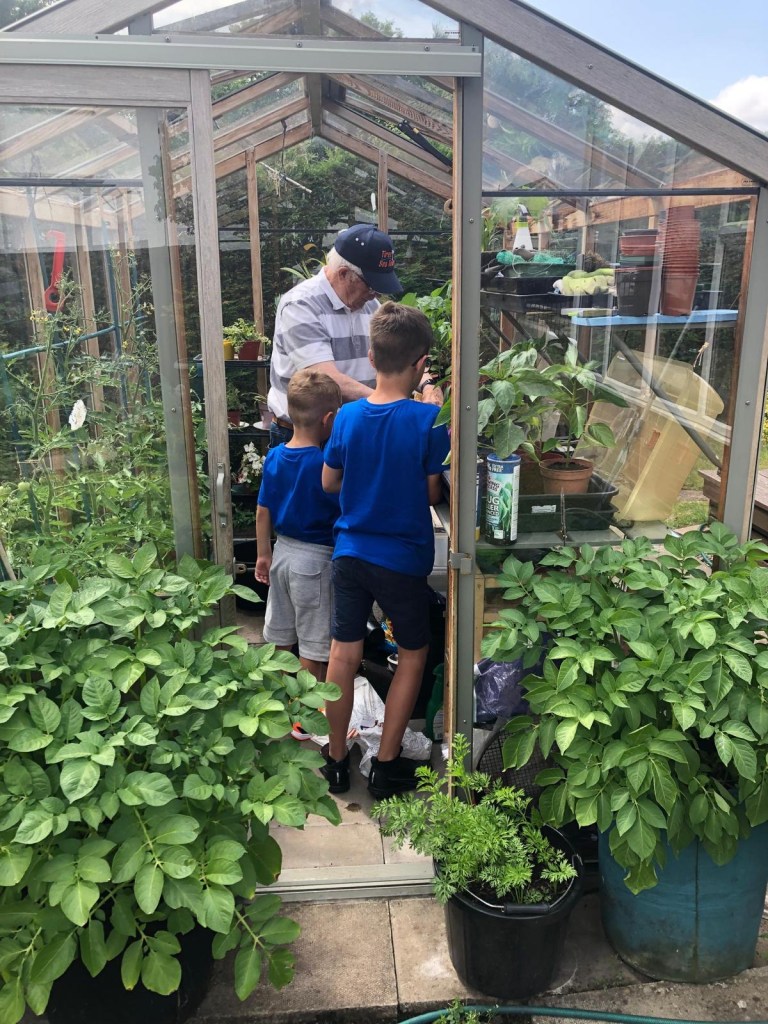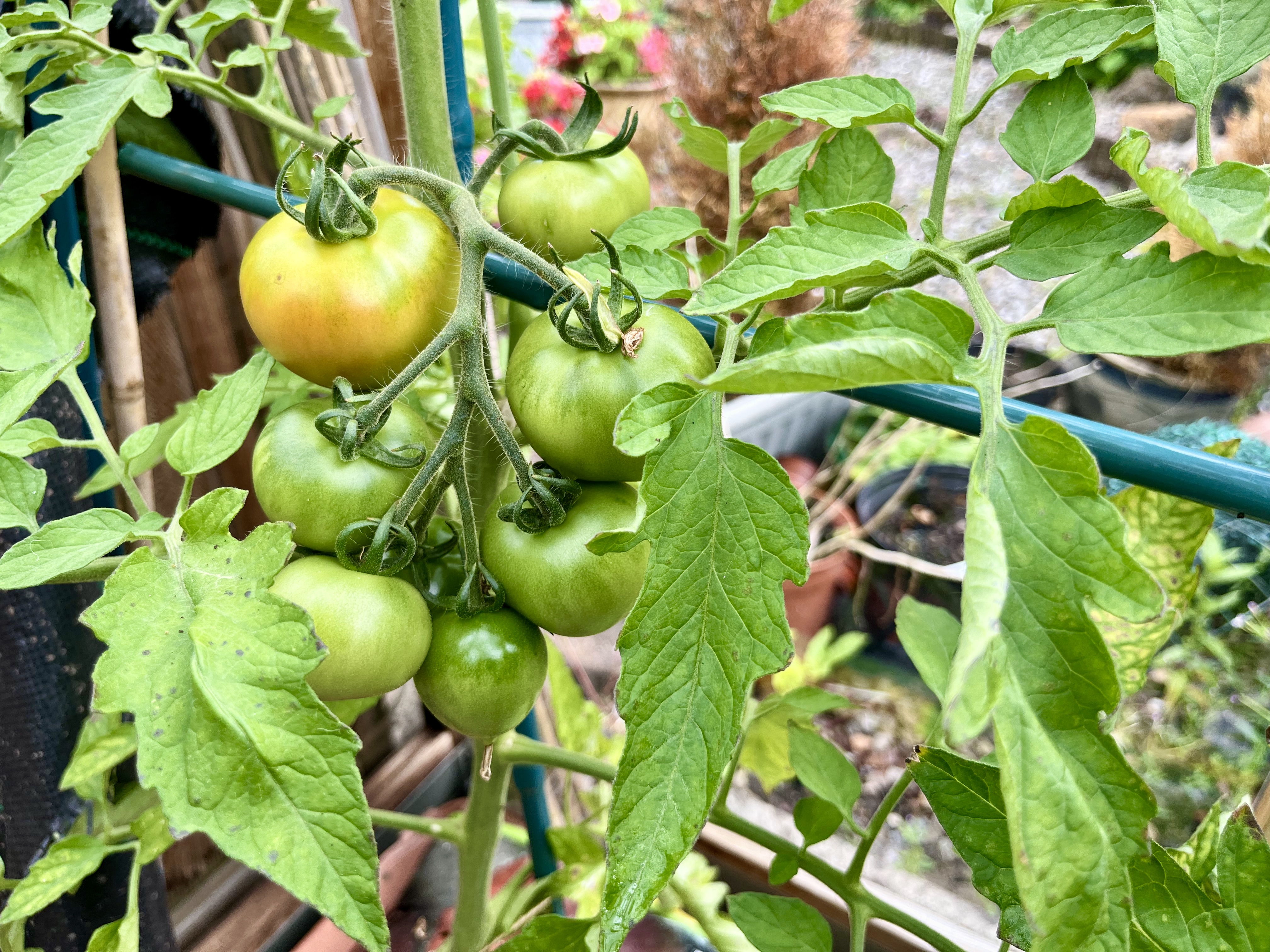 The Greenhouse is a bit full, but I am enjoying my experiment with house plants, some grown from seed and others bought and split and repotted. My wife has already claimed a few for her collection in the house! You can see above two small cacti that have been grown from seed, so praying they will survive! The tomatoes are showing their displeasure at not being my main focus this year, but they are now starting to ripen and we have enjoyed the firstfruits along with a nice cucumber! The peppers and aubergines are looking good, and the tub of parsley and garlic flavoured chives we have proved to be tasty in a stir fry.
