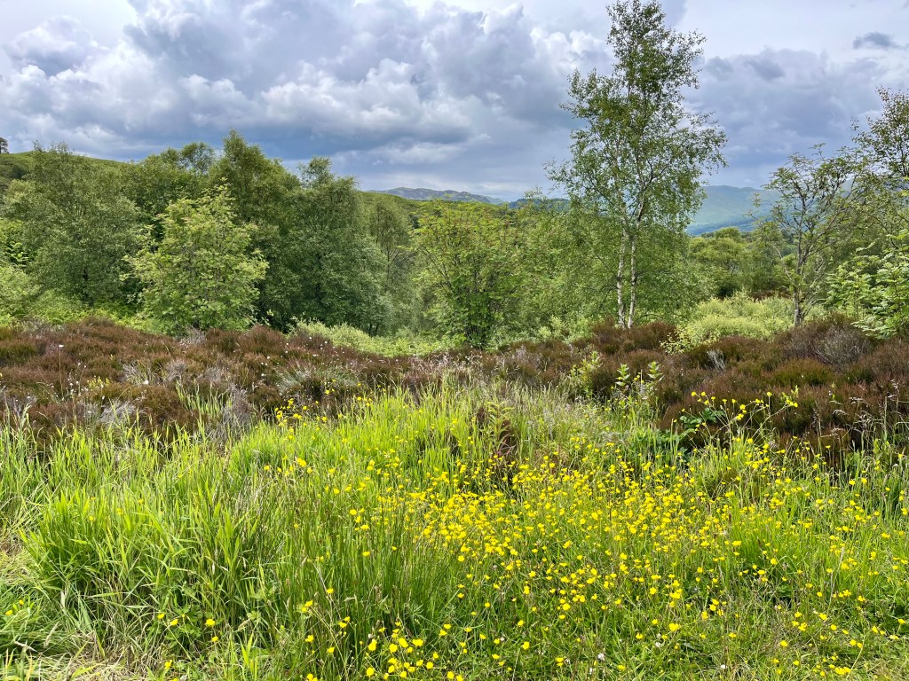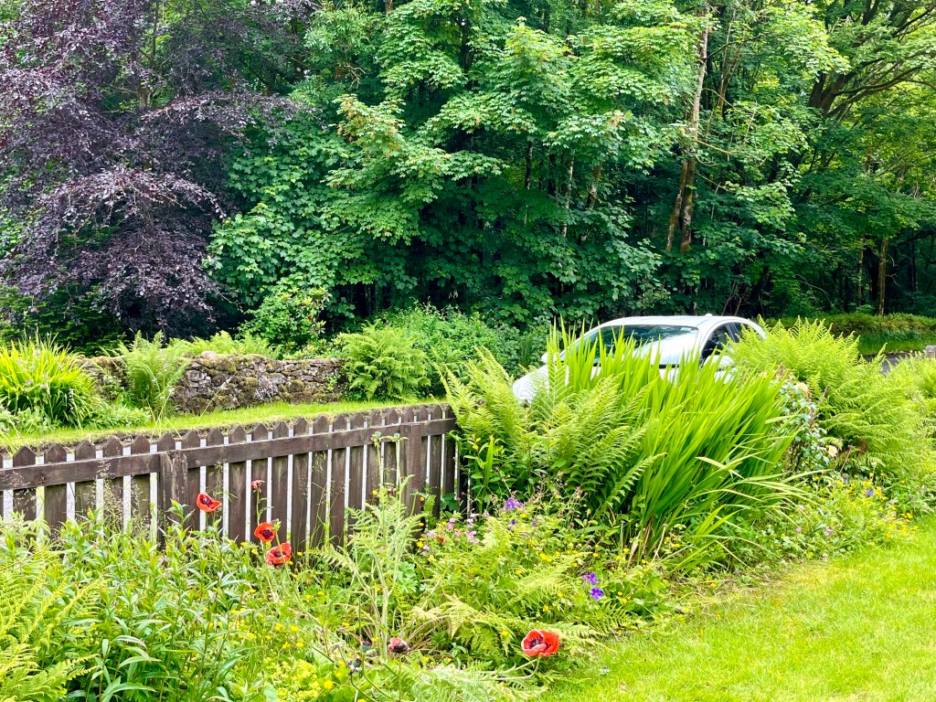 I finished my last blog by saying’ I’ll tell you more about our trip to The Trossachs and about my garden in my next blog. Well, the trip to the Trossachs at the end of June included a visit to a small cottage of a friend, and then to enjoy a stroll on the banks of Loch Lomond on a beautiful summers evening. All very romantic! So here are some photos of that most enjoyable day!