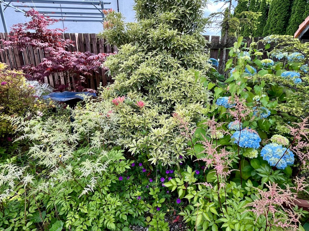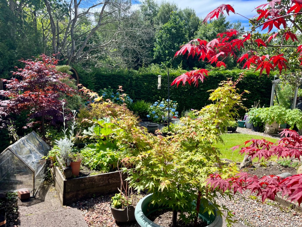 Well, I know the famous poem by Robert Browning that many of us learned at school says, ‘Oh, to be in England’, so forgive me for stealing his strap line. However April has been a special month this year here in Scotland in 2025, with temperatures reaching 22.8 degrees C in the North, this against a seasonal average of around 13 degrees! This enabled us to get out and about, as is our want, and also to get many jobs done in the garden. Here are some garden photos.