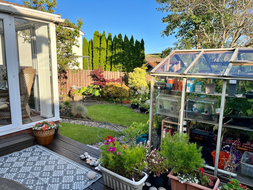 It’s lovely to sit in the morning quietness and watch the sunbeams start to creep across the garden. To see the birds activity, and often to watch the resident squirrel do his morning inspection! Today being the 31st of August, this was the last morning of Summer in 2025 here in Scotland.