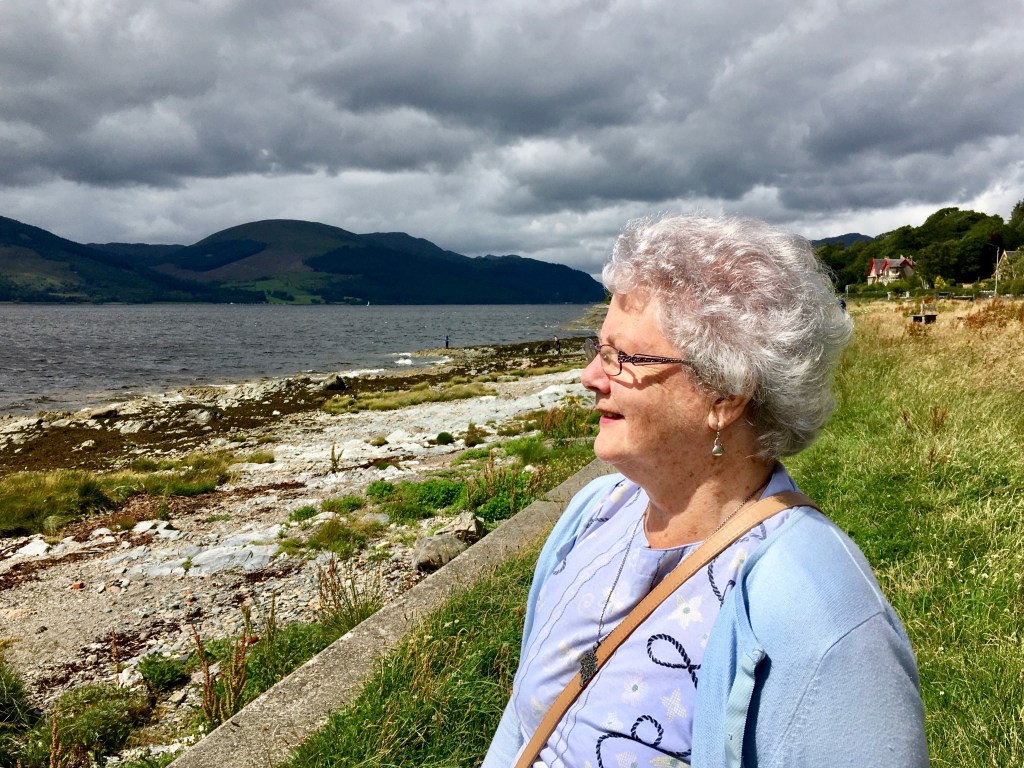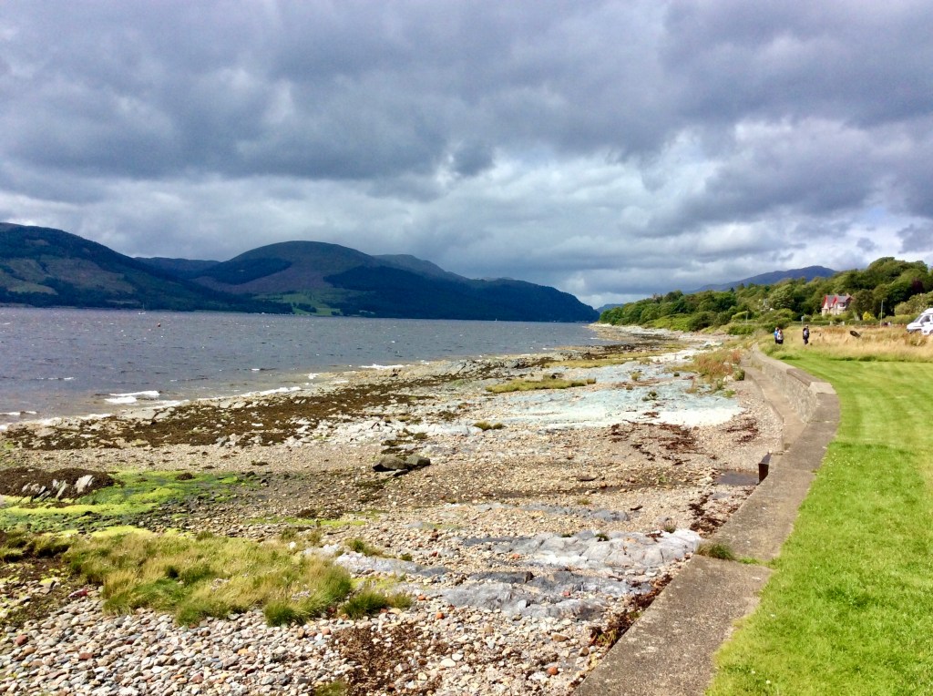 So this past weekend we celebrated with a couple of special day trips, to some of our old haunts on the Clyde Coast. Our first trip was on Saturday, when we visited Cove, a little village on the edge of Loch Long, just where it reaches the Clyde estuary. We drove from Glasgow, crossed the river Clyde at the Erskine bridge, and down through Dumbarton and Helensburgh to Gareloch (home to the UK’s nuclear submarine base). Then we turned along the southside of Gareloch and over the hill to Cove. About and hour and fifteen minutes from Glasgow depending on road conditions. It was a warm day with a fresh breeze and intermittent showers. You never tire of the beauty of the Scottish scenery and when we reached Cove the place was, …. quiet! We came home via Glen Fruin and Loch Lomond.