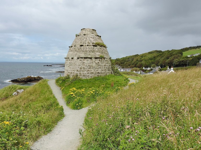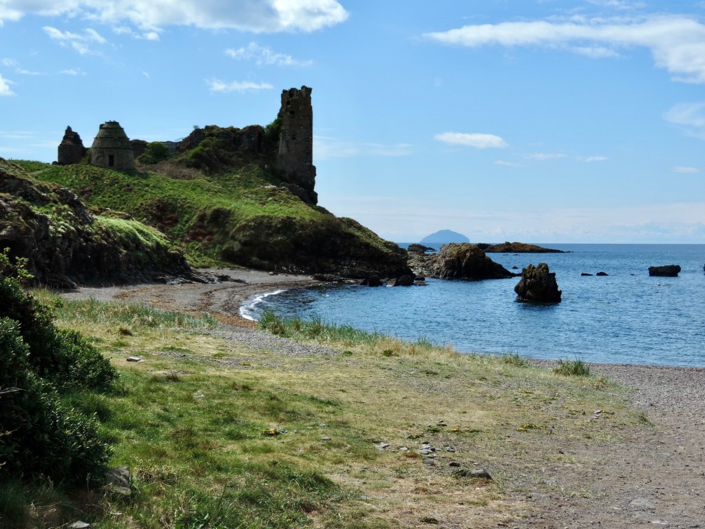 ‘Fair Monday’ was another showery day, but armed with the proverbial picnic lunch we headed in the other direction, keeping on the southside of the Clyde Estuary and headed for the small village of Dunure. The council there had recently upgraded the toilet block and park entrance, but had not bargained for the onset of the Corona virus! Park entrance fee and entrance to the toilets called for cash, with no facility for paying by card. Since few people had cash we were graciously allowed entrance without paying, enough to warm a Scotsman’s heart! 🙂 Dunure is beautifully situated with a pretty harbour and spectacular castle, home to the Kennedy clan.