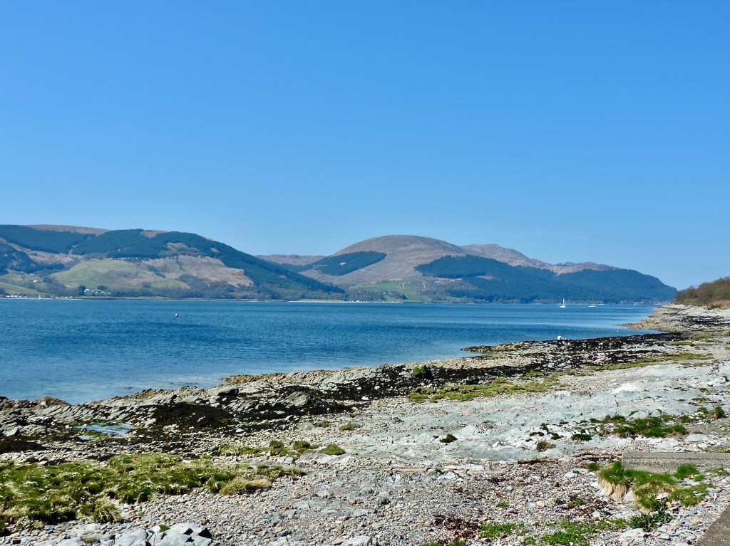 We decided, let’s head for the hills and sea, in the Bute and Argyll region, just a comfortable afternoon’s drive from Glasgow. The Rosneath Peninsula, which is just south of Garelochead, was our chosen destination on a beautiful sunny day. The Rosneath peninsula separates the Gareloch from Loch Long, two sea lochs on the Firth of Clyde. Our journey took us over the Erskine bridge and on to Loch Lomond, before we turned off, onto the ‘new’ road to Garelochead. I am always amazed at how beautiful, and invariably quiet this road is.