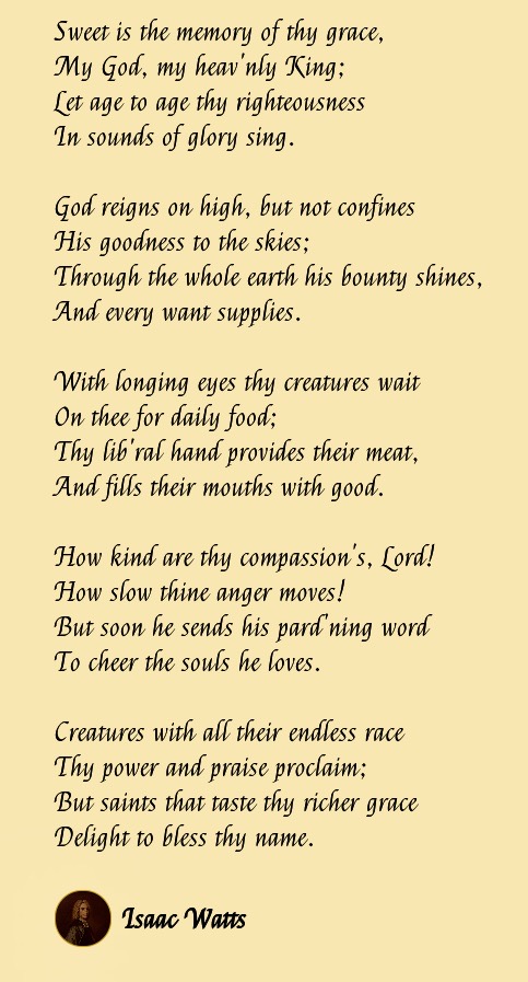 Isaac Watts hymn of 1719 beautifully summarises psalm 145. Take a read!