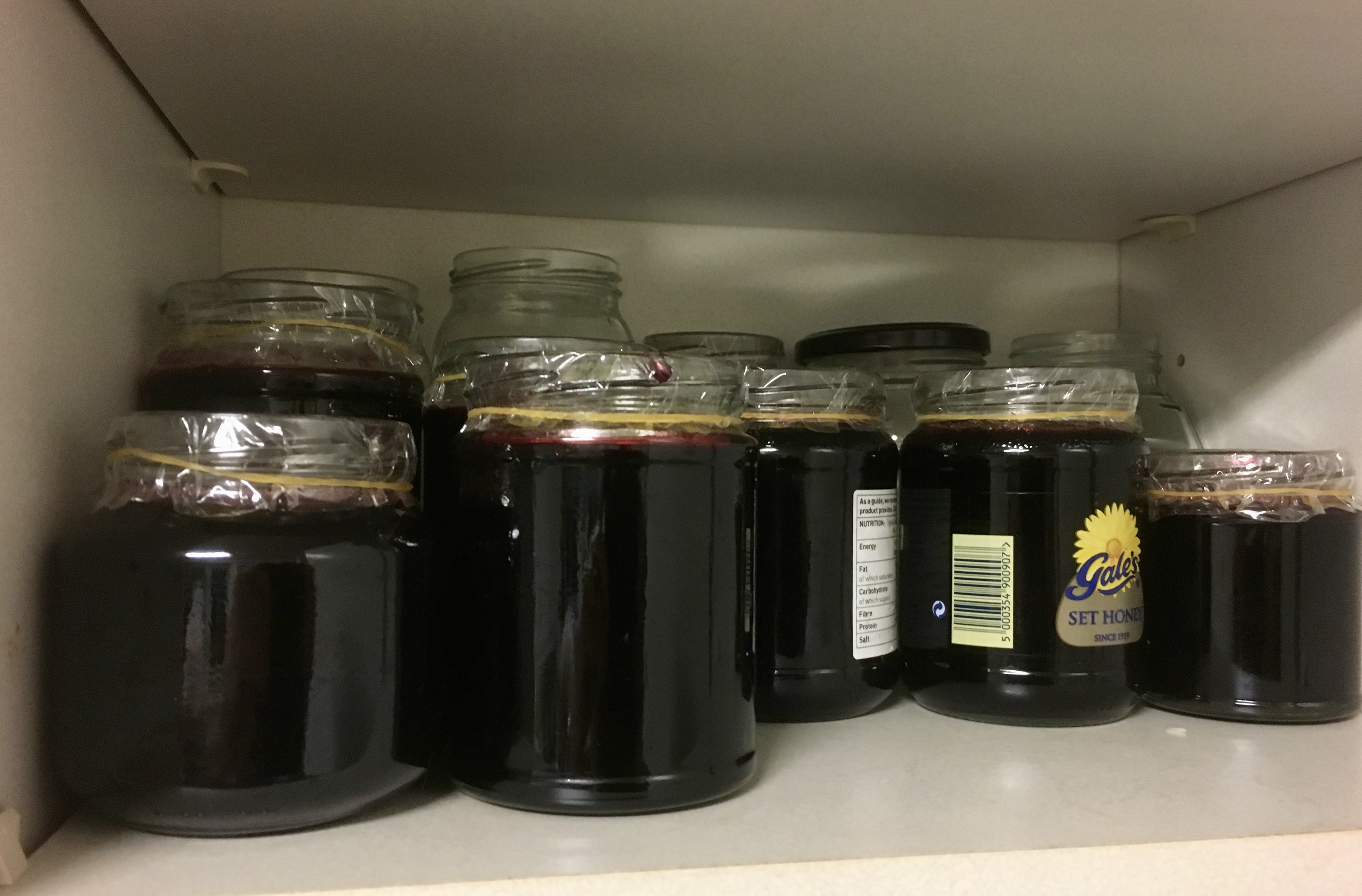 Other things we do at this time of year is pick some local brambles, for our favourite bramble and apple jelly. This years crop gave us 8 lbs of jelly. It was quite difficult picking, as the wet weather had destroyed a lot of the brambles.