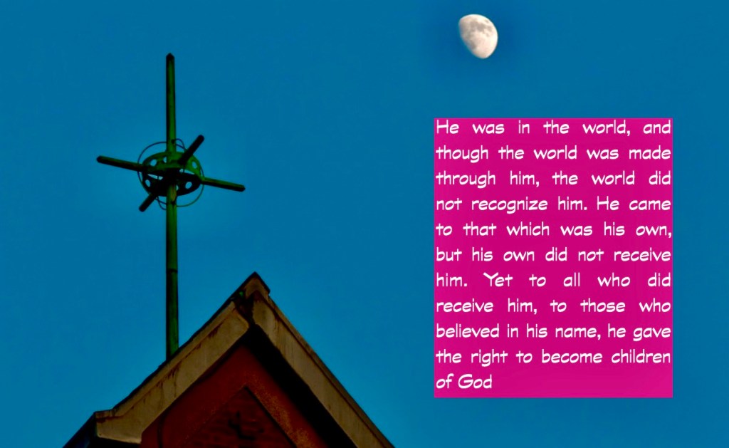 In June daytime in Scotland extends to 11pm and beyond, so it was nice to drive around the area close to home one summer evening. There I spotted this unusual cross on top of a Presbyterian Church, which seemed to me to still have the ‘crown of thorns’ hanging on the cross. With the moon in the background it was for me a very emotive scene, hence the photo and the text.