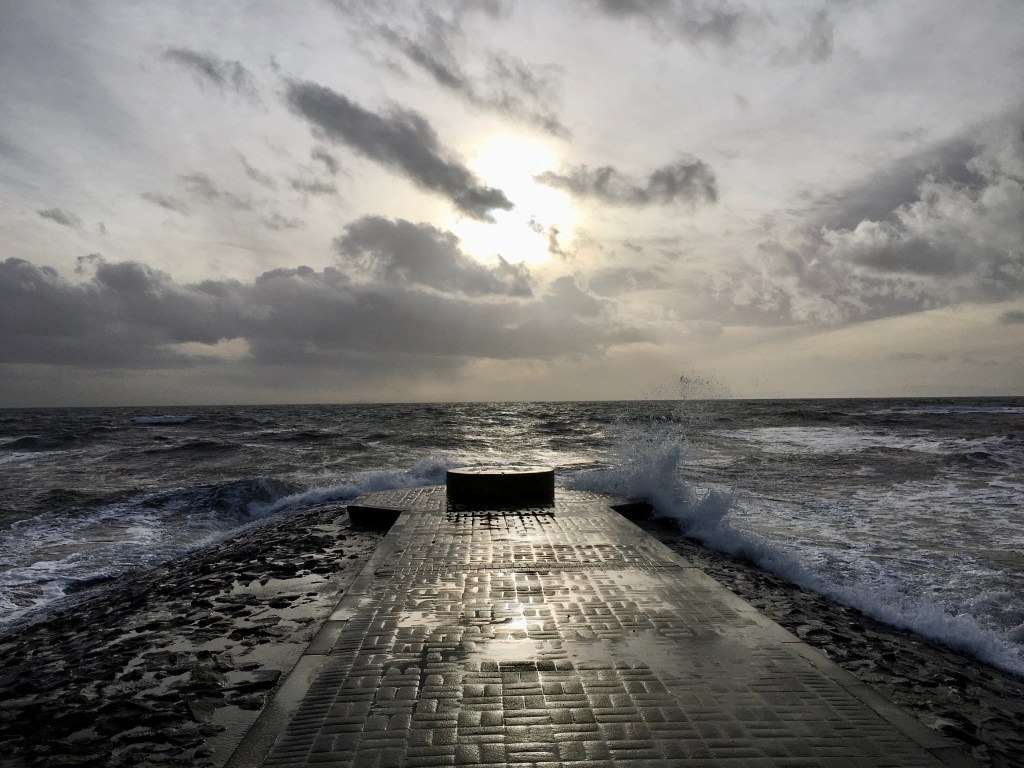 Irvine is our nearest point to the sea, so hardly a month goes by without us being here, either for a walk on the beach or for a read in the car if the weather is inclement! In my ‘boyish imagination’I think looking at this photo, that I’m standing on the deck of a submarine as it heads out to sea from the clyde 🙂