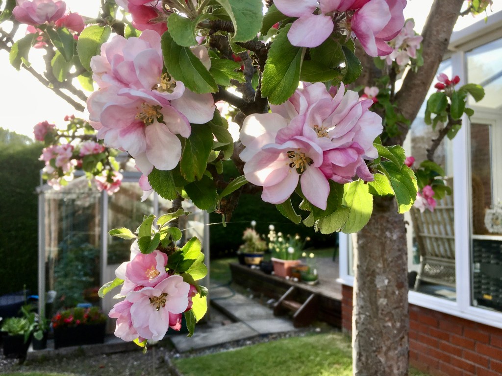 May – Apple Blossom in the garden, daffodils and tulips in decline, YES! summer is around the corner