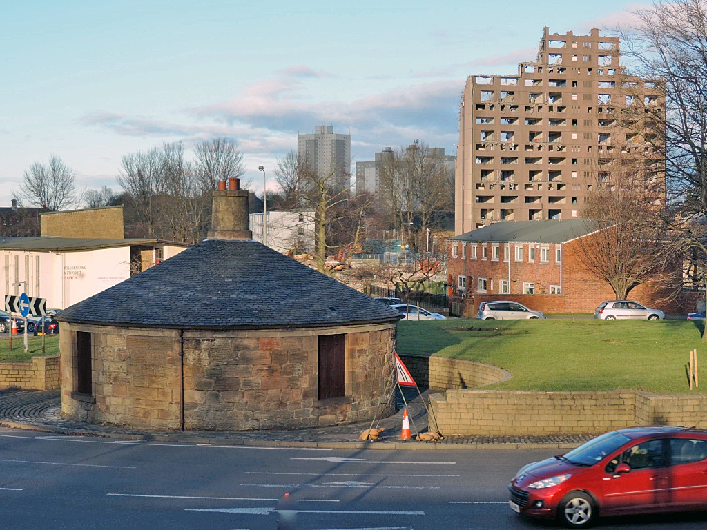 View from our window in Harriet Street 1958View from our windowHarriet St. – Thanks to unknown photographer!Old Pollok School being demolishedGreenview StreetShawbridge StreetOld Pollokshaws showing the Round toll – Prior to motorised transport the stage coach to Glasgow from Harriet Street at 10am cost Inside 9p, Outside 6p, Basket 7p.