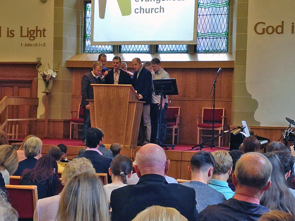 Jim and Annie Wands – Elder and leader in so many different capacities Bert and Helen Carlisle with son Jim Elder and Bible Class Leader, and main Youth Camp OrganisersArchie and Ella Bradford – Elder and Choir master of our Men’s and Mixed , Choir. Also our building supervisorAndrew Cumming – Elder, Musician and SingerIan Macdonald – Elder and Bible TeacherIan Smith – Elder and Singer, Martin McKinnon, Elder, Treasurer and Children’s leader & Wallace Cormack – Elder and Bible TeacherPrayer at the induction Service for our new Pastor Colin Adams in 2015