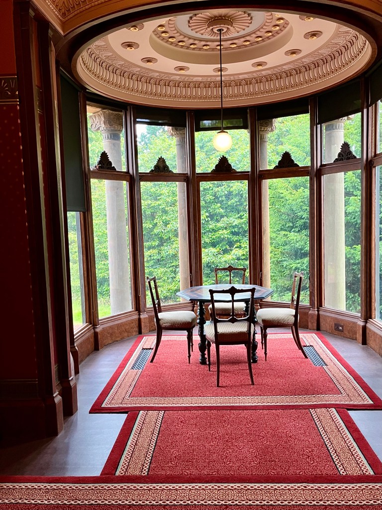 In the southside of Glasgow there is villa called Holmwood House built in 1858, which was designed by architect Alexander ‘Greek’ Thomson (1817-1875) who was reputed world-wide to be one of Scotland’s most talented architects and designers. We recently visited, and were not disappointed. It is beautifully situated on the banks of the White Cart river, amid extensive grounds. Built initially for paper mill owners Robert and James Cooper, whose family occupied it between 1858 – 1909. After this it changed hands many times before it was taken over in 1958 by The Sisters of our Lady of the Mission. The property was used as a chapel and dormitory, and soon the Sisters had established a primary school, and also taught in a local comprehensive school. They were also involved in many other aspects of parish work. By 1994 they had moved to more suitable premises and the building was purchased by NTS, who since then have worked tirelessly to restore its appearance and condition as in 1858. Some very impressive work has been done. Here are some photographs with much more information on-line.