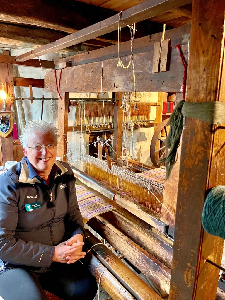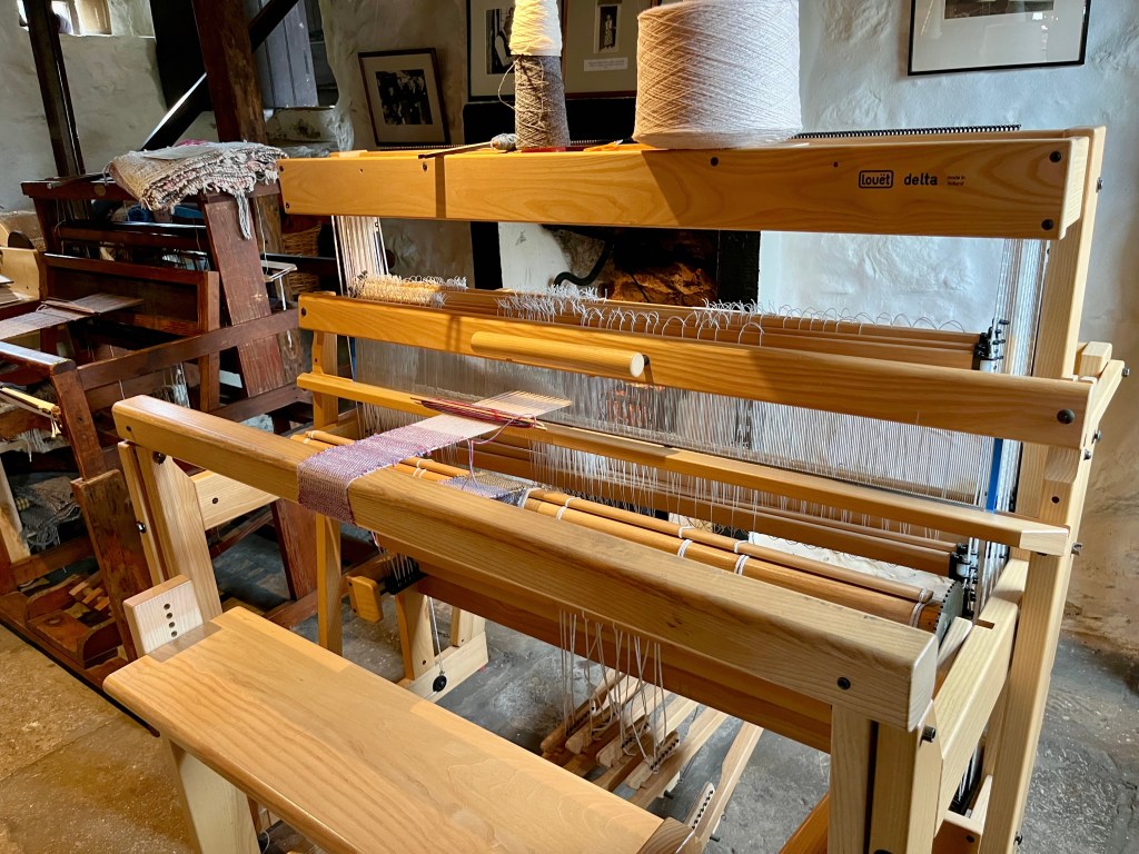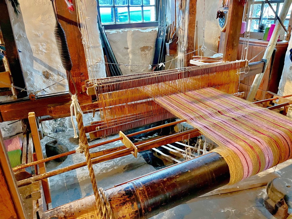We started our visits last month going to a house built for the rich, and ended it with a visit to a house built for the poor, ‘Weaver’s Cottage’ in Kilbarchan which was built in 1723. Weaving was first recorded in this village in 1695 when there were 30-40 looms. By1838 eight hundred looms were said to be working in the village and local area. My granny was a weaver, so I was fascinated to hear the story of the weaver being recounted and demonstrated by the video being played and by the NTS staff. Everything from the spinning of the yarn to the weaving of a variety of cloths, even intricate clan tartans provided for the Royal Family and others, and to catch something of their life and work away back then.