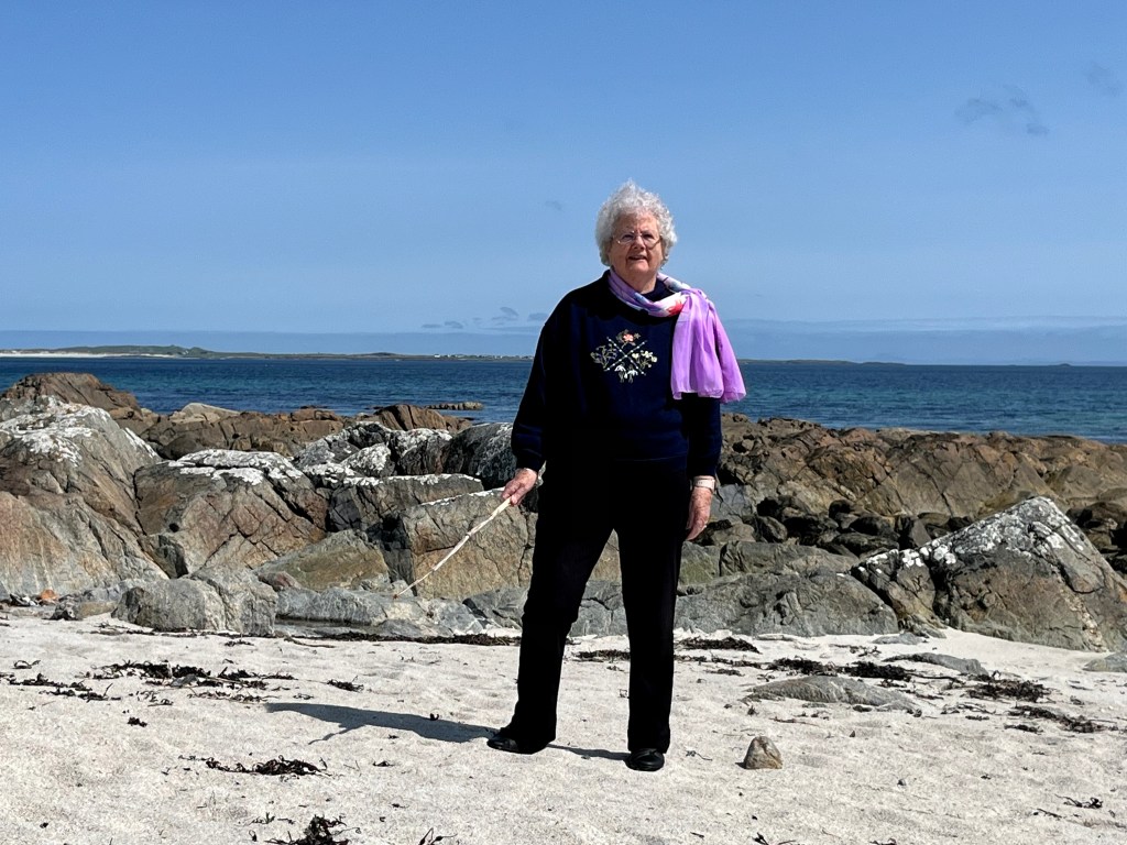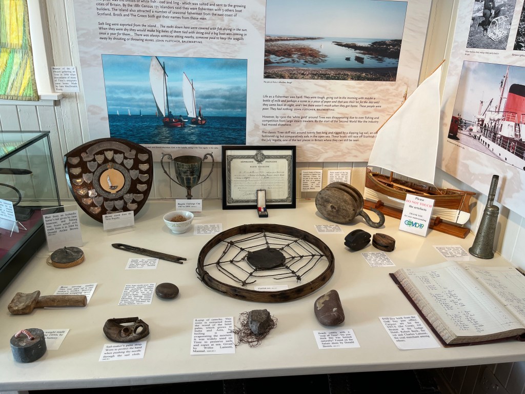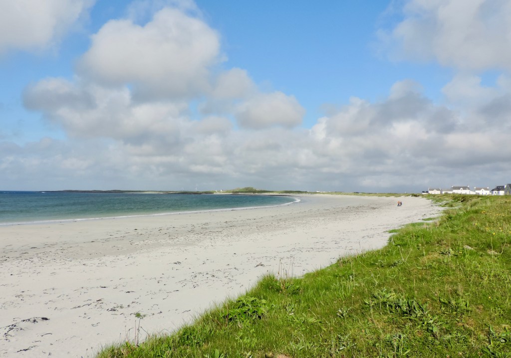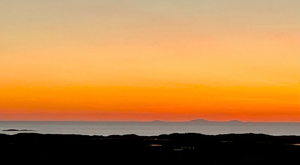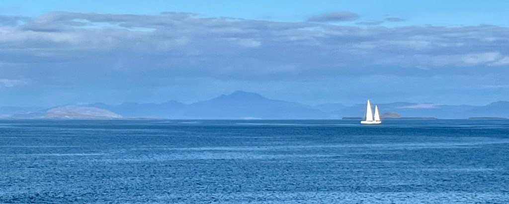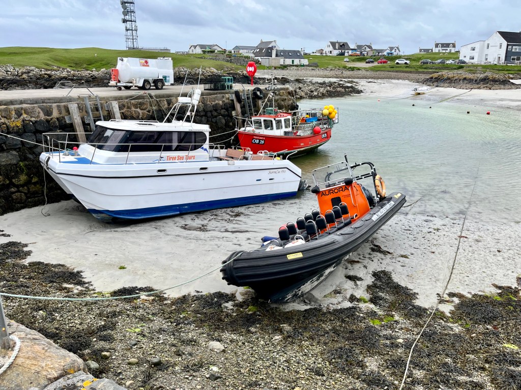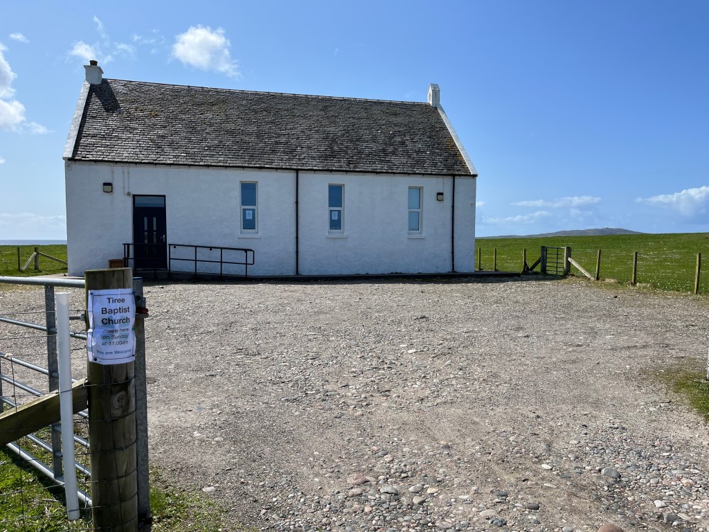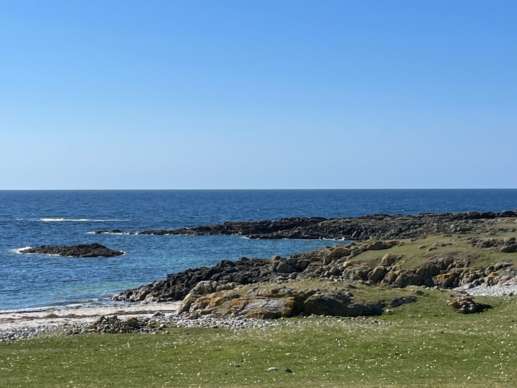 The above are not great photos, in the first two the boat was moving and I was ‘happed up’ with a life jacket. On this cool sunny day without a breath of wind, sailing off the coast of Tiree I felt it was one of these ‘time stands still’ moments when you feel over awed by the breath-taking beauty of it all! Since then, when I look at this photo I think of a similar moment on a boat on the sea of Galilee, just after dawn, when the boatman cut the engine and we floated in quietness on the still blue sea, when the sky and sea seemed to merge. Not surprisingly thoughts of the man who walked on these waters came to mind, and a chorus we sang as kids. Yea, beautiful. I know many of you will have had similar moments when confronted by the beauty of God’s creation.