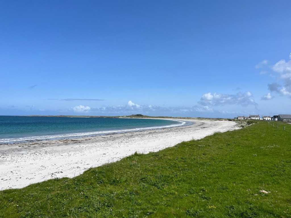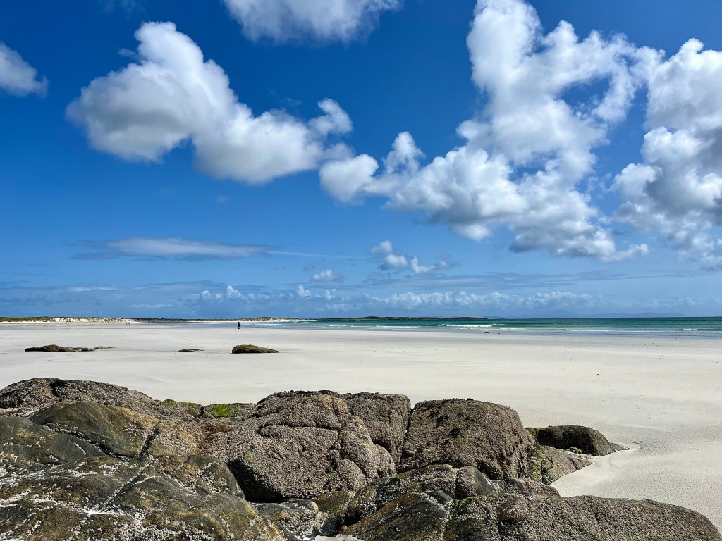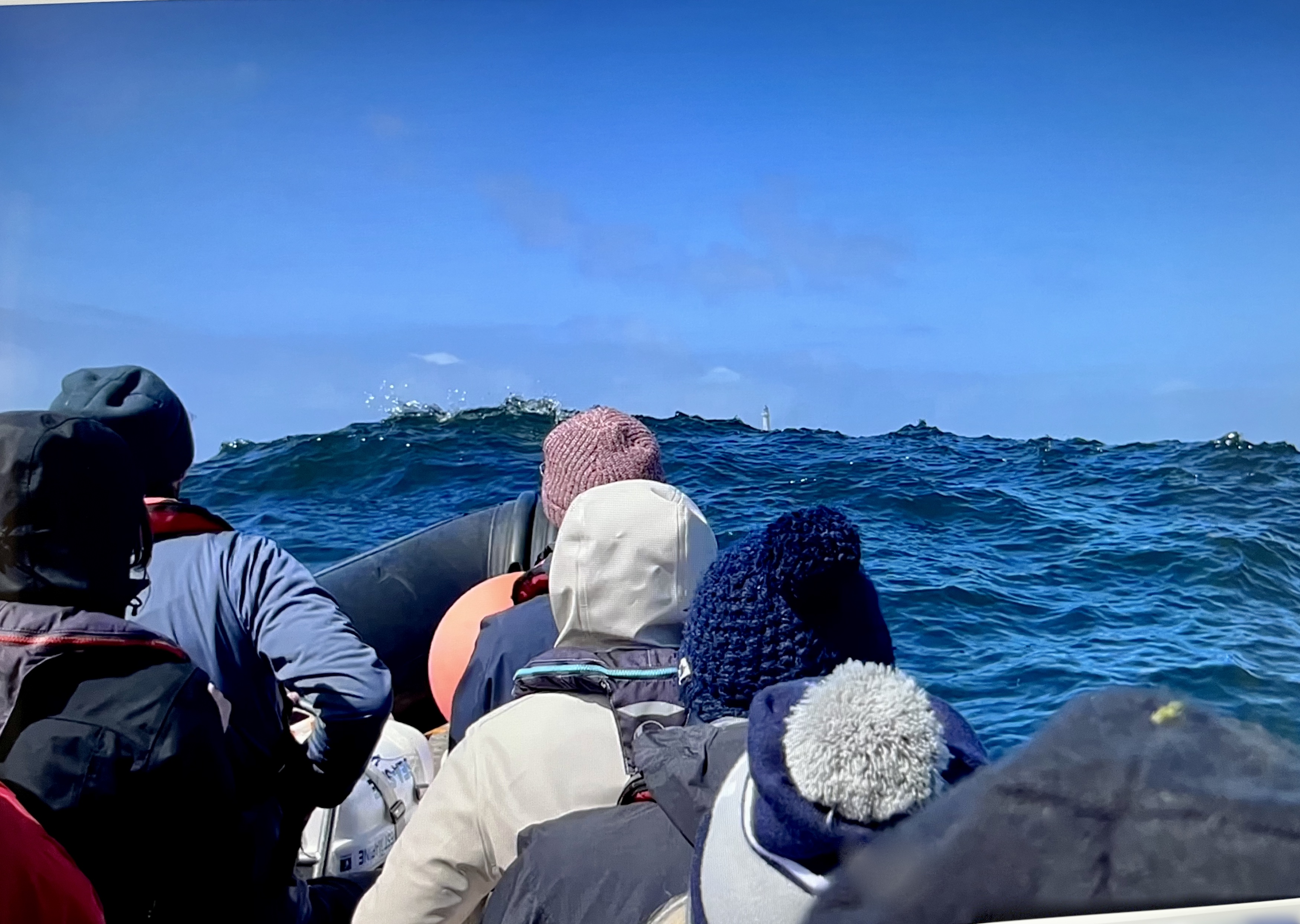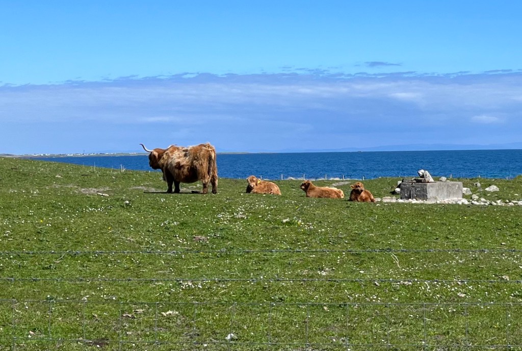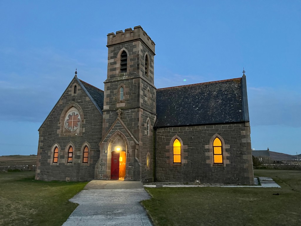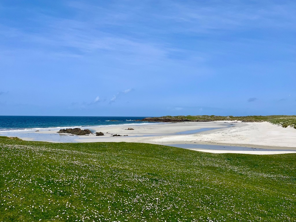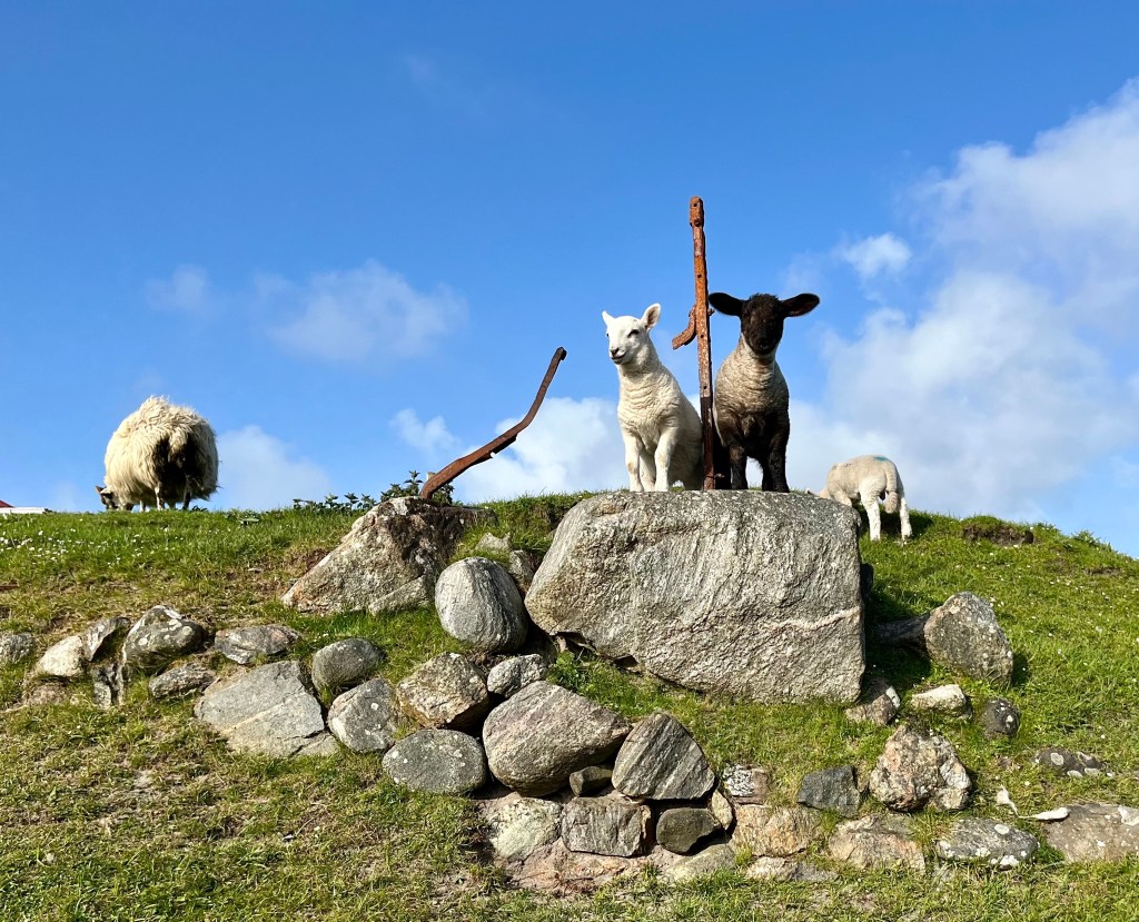 The above are not great photos, in the first two the boat was moving and I was ‘happed up’ with a life jacket. On this cool sunny day without a breath of wind, sailing off the coast of Tiree I felt it was one of these ‘time stands still’ moments when you feel over awed by the breath-taking beauty of it all! Since then, when I look at this photo I think of a similar moment on a boat on the sea of Galilee, just after dawn, when the boatman cut the engine and we floated in quietness on the still blue sea, when the sky and sea seemed to merge. Not surprisingly thoughts of the man who walked on these waters came to mind, and a chorus we sang as kids. Yea, beautiful. I know many of you will have had similar moments when confronted by the beauty of God’s creation.