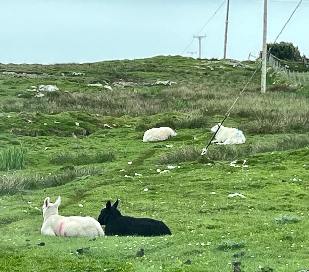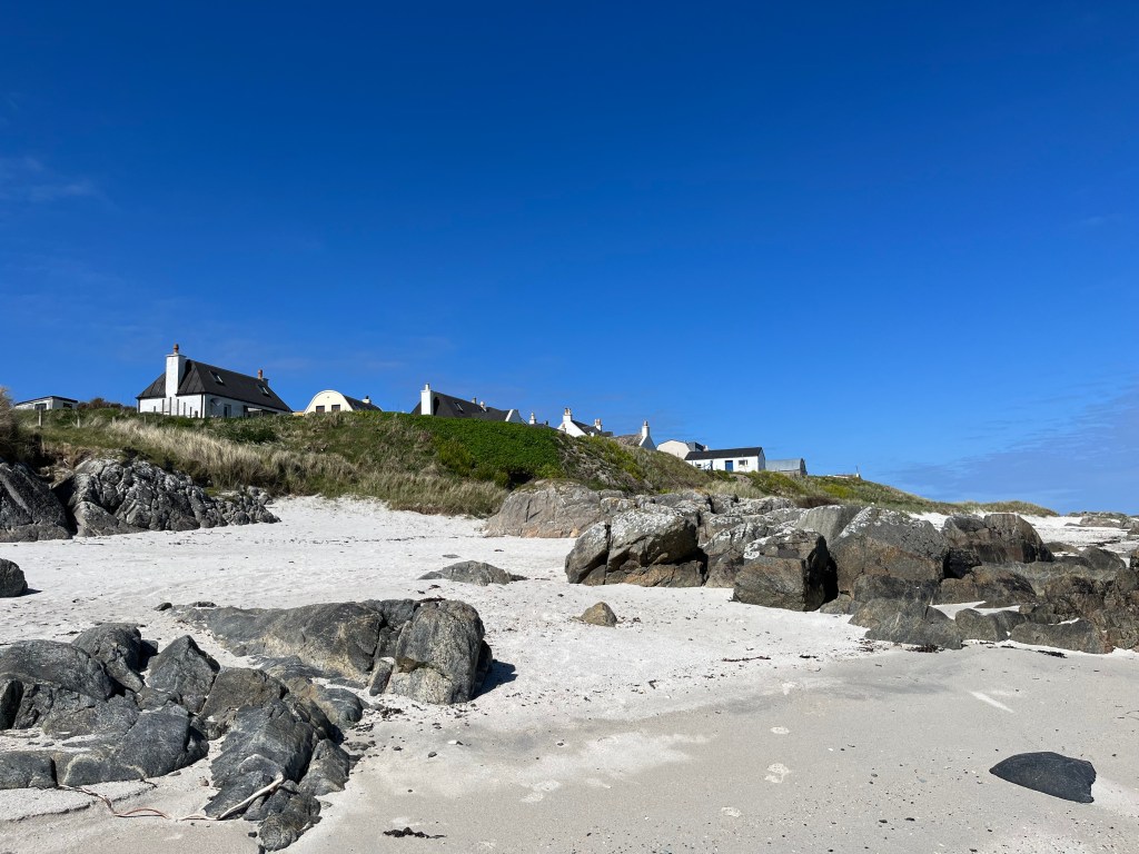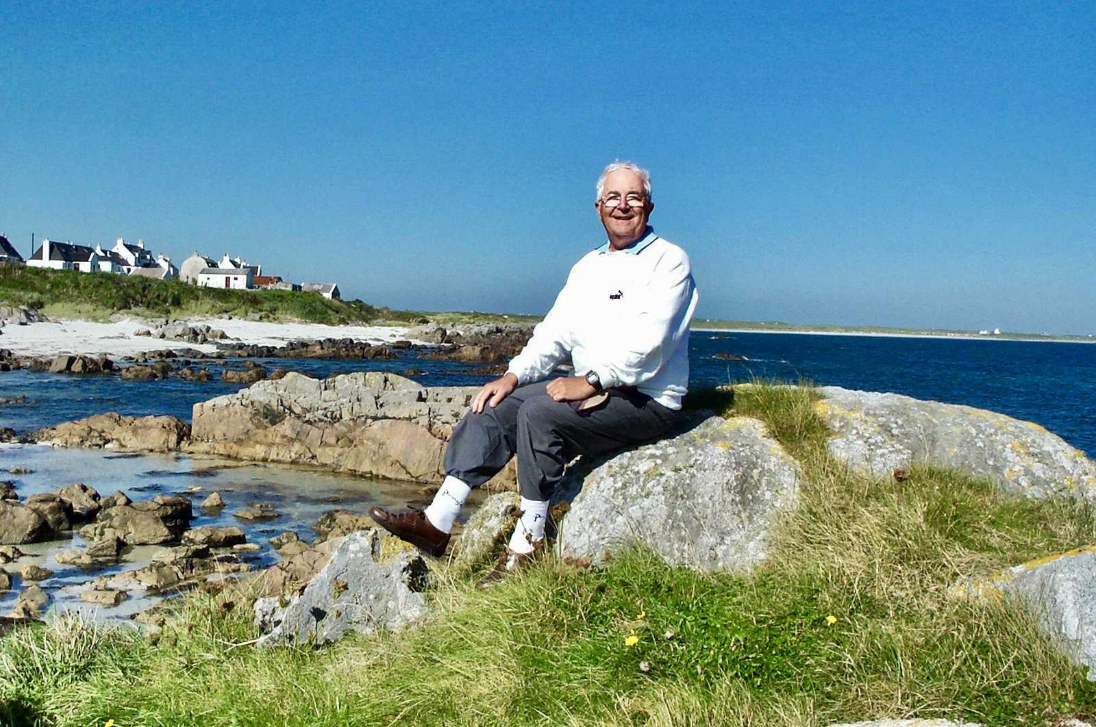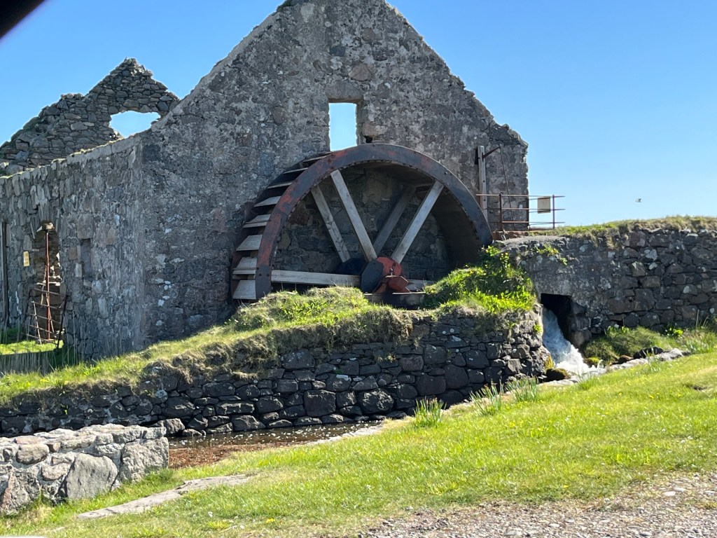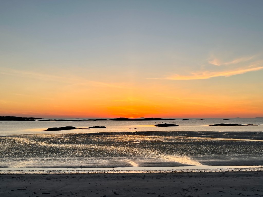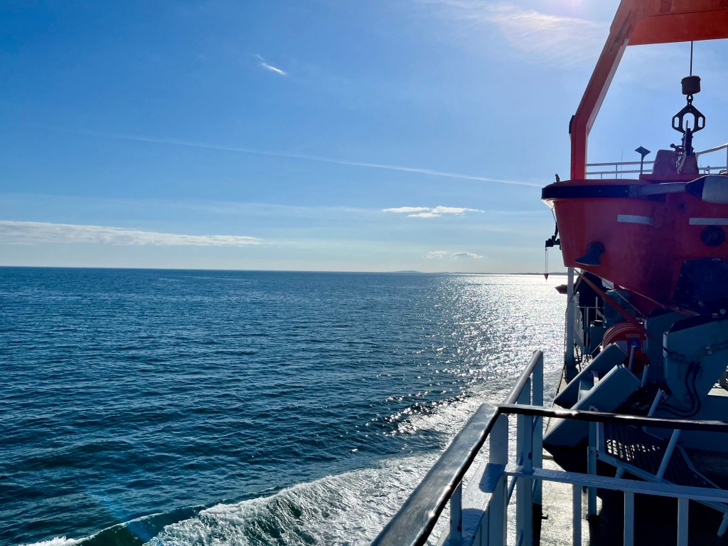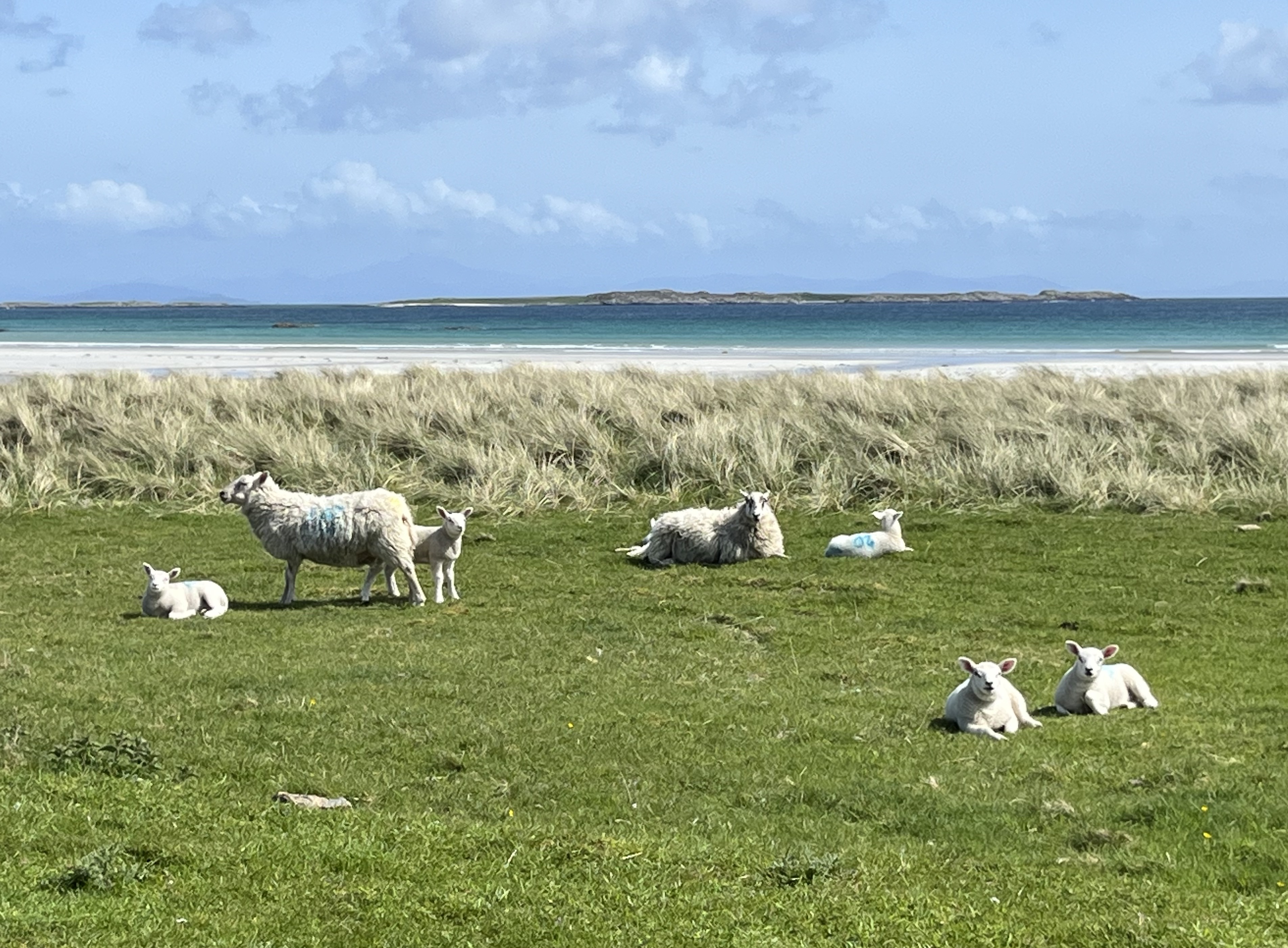 The above are not great photos, in the first two the boat was moving and I was ‘happed up’ with a life jacket. On this cool sunny day without a breath of wind, sailing off the coast of Tiree I felt it was one of these ‘time stands still’ moments when you feel over awed by the breath-taking beauty of it all! Since then, when I look at this photo I think of a similar moment on a boat on the sea of Galilee, just after dawn, when the boatman cut the engine and we floated in quietness on the still blue sea, when the sky and sea seemed to merge. Not surprisingly thoughts of the man who walked on these waters came to mind, and a chorus we sang as kids. Yea, beautiful. I know many of you will have had similar moments when confronted by the beauty of God’s creation.