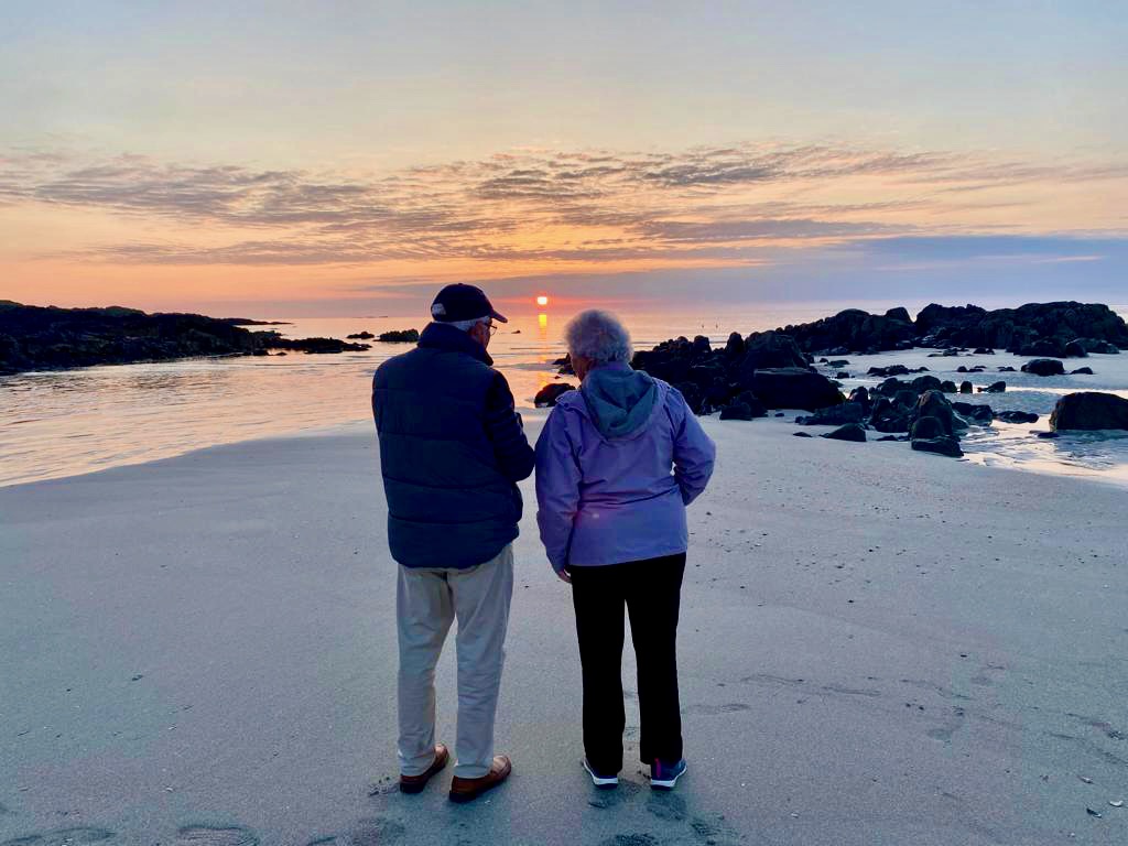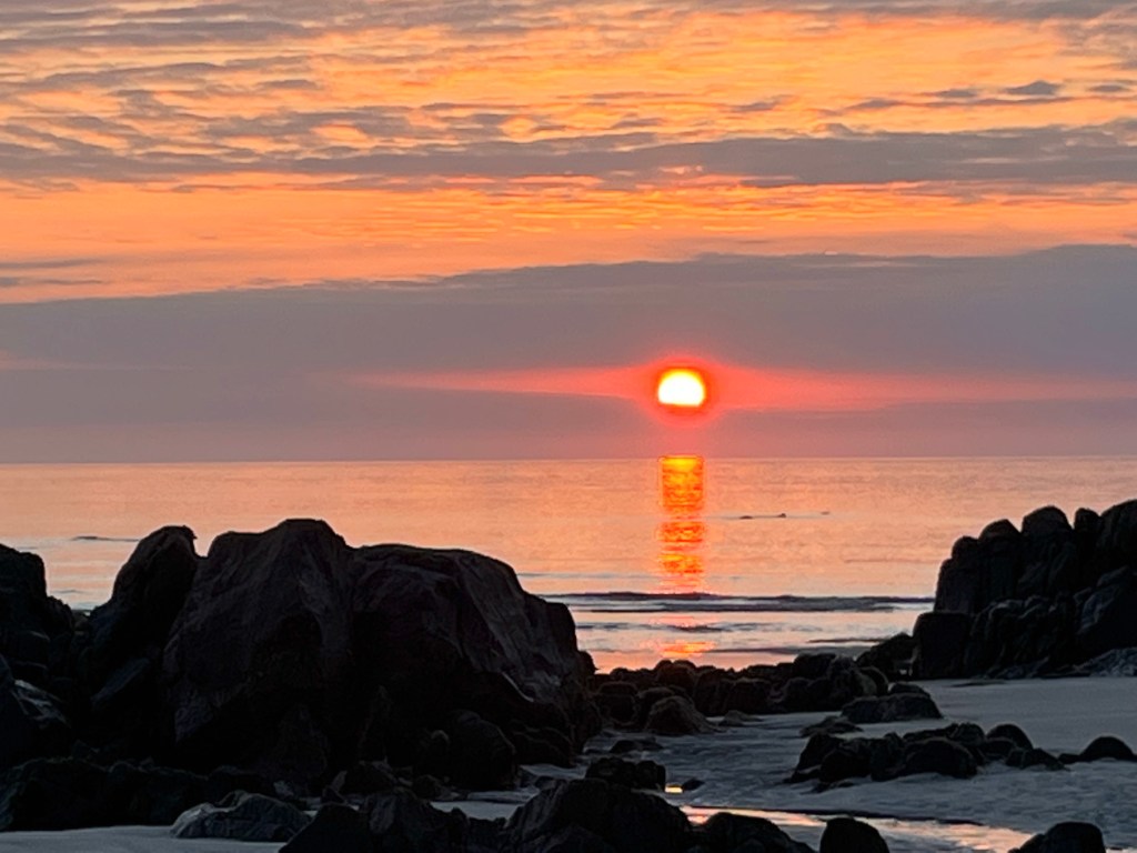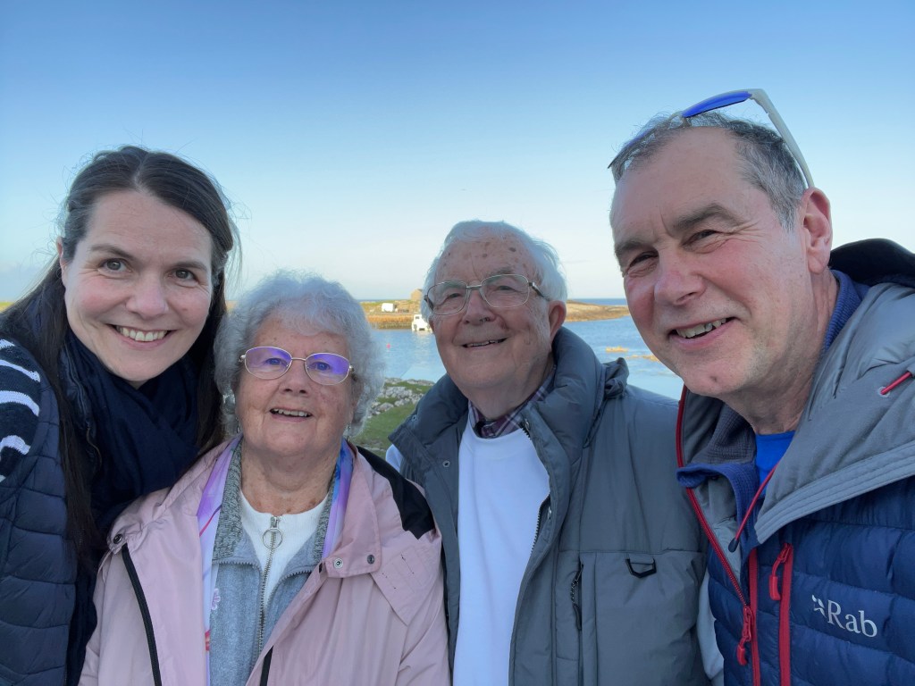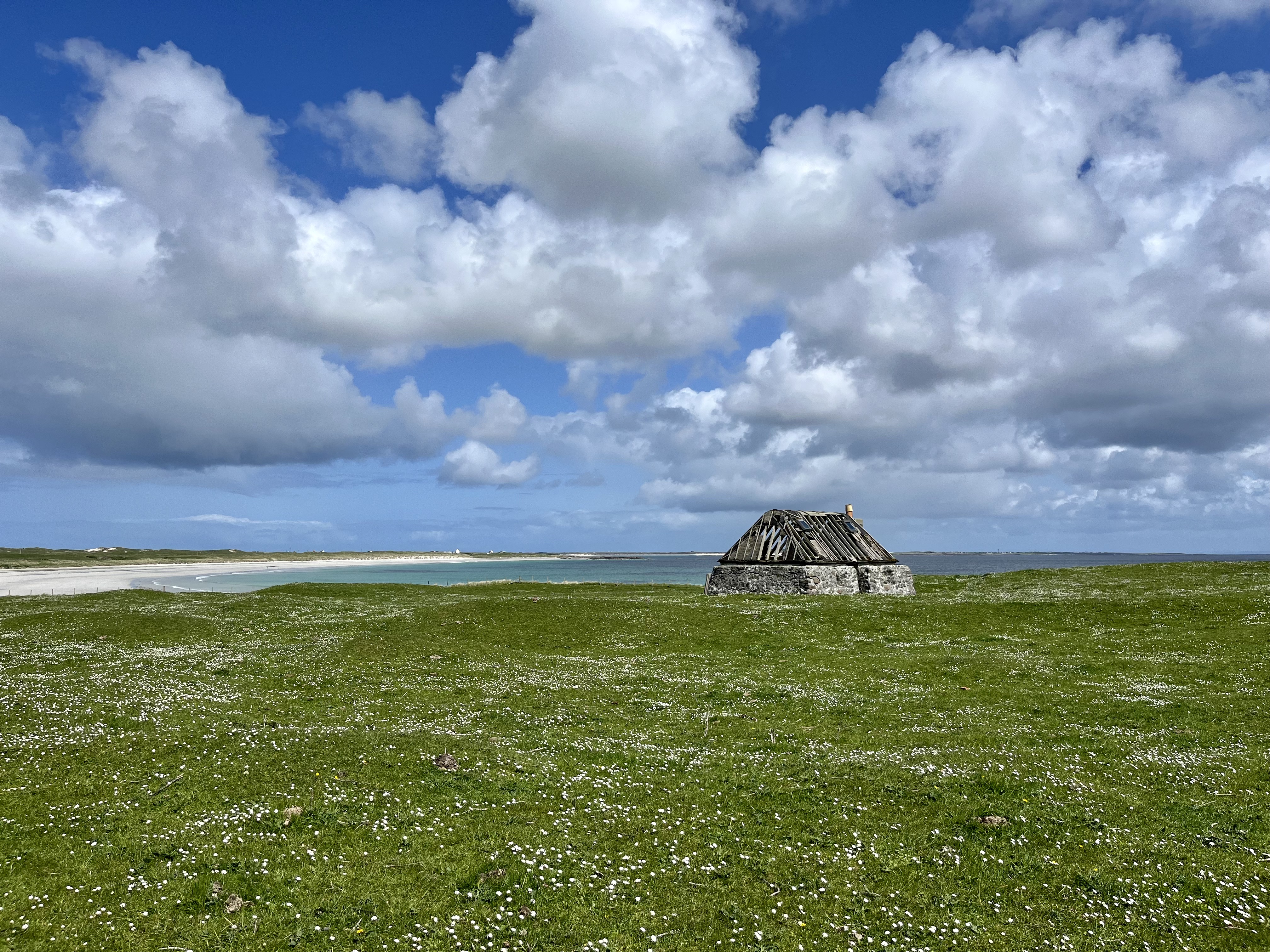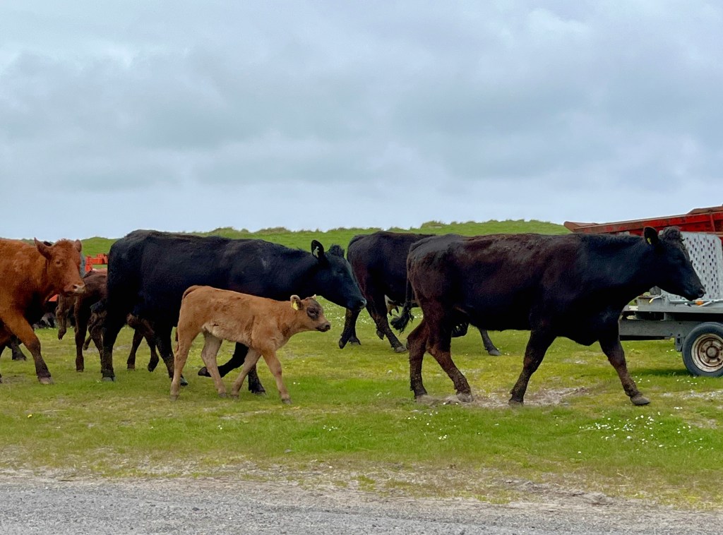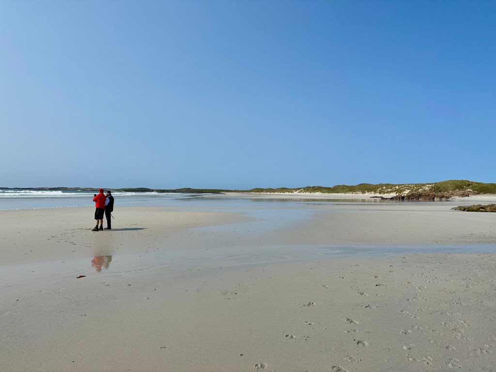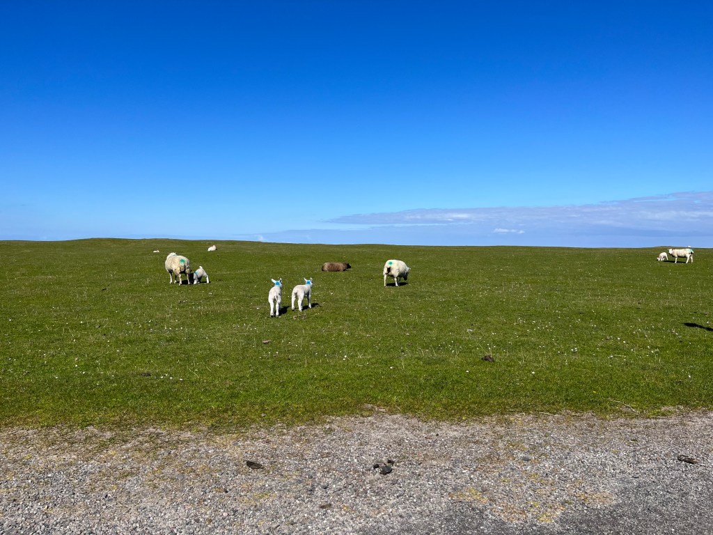 The above are not great photos, in the first two the boat was moving and I was ‘happed up’ with a life jacket. On this cool sunny day without a breath of wind, sailing off the coast of Tiree I felt it was one of these ‘time stands still’ moments when you feel over awed by the breath-taking beauty of it all! Since then, when I look at this photo I think of a similar moment on a boat on the sea of Galilee, just after dawn, when the boatman cut the engine and we floated in quietness on the still blue sea, when the sky and sea seemed to merge. Not surprisingly thoughts of the man who walked on these waters came to mind, and a chorus we sang as kids. Yea, beautiful. I know many of you will have had similar moments when confronted by the beauty of God’s creation.
