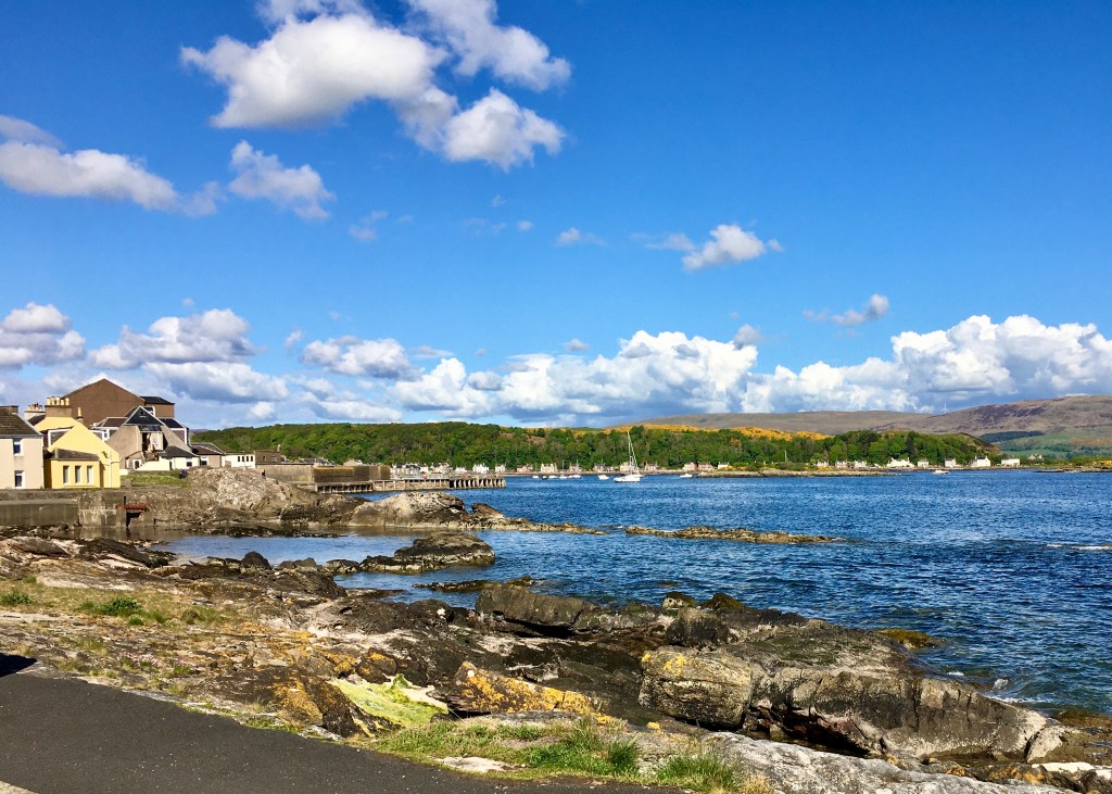 The only town on the island is Millport, which was once a famous stopping off point for the Clyde ferries in the middle of the last century when the Clyde Coast was a popular holiday destination for people living in Glasgow and the Central belt of Scotland. It is a lovely litle town nestling around Kames Bay. As you approach it you have some spectacular views of other islands in the firth, Little Cumbrae,, Bute and Arran, and on a clear day you can see Ailsa Craig and even the Coast of Ireland.