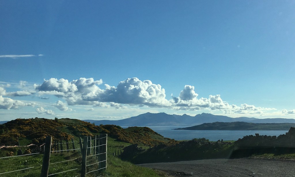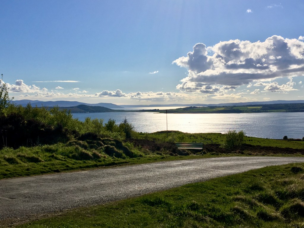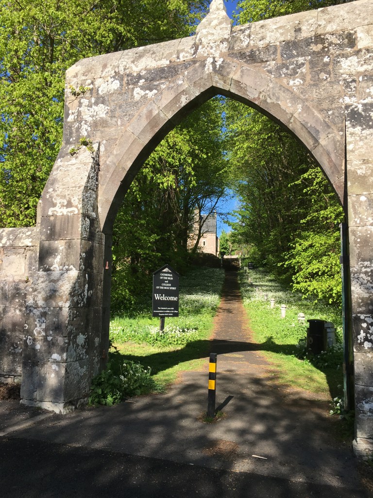 On the return journey we like to take the narrow road that runs down the middle of the island, and stop at the viewpoint, this is the island’s highest point at 417 ft above sea level, where a large boulder called “The Glaid Stone”is situated. No time today to visit one of Scotland’s smallest Cathedrals – The Cathedral of the Isles’ but we did pass one of the entrances.